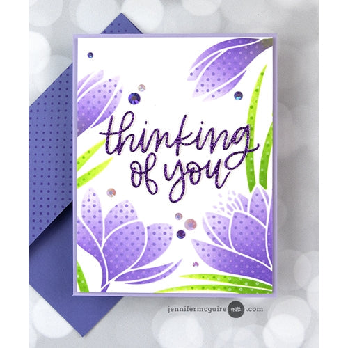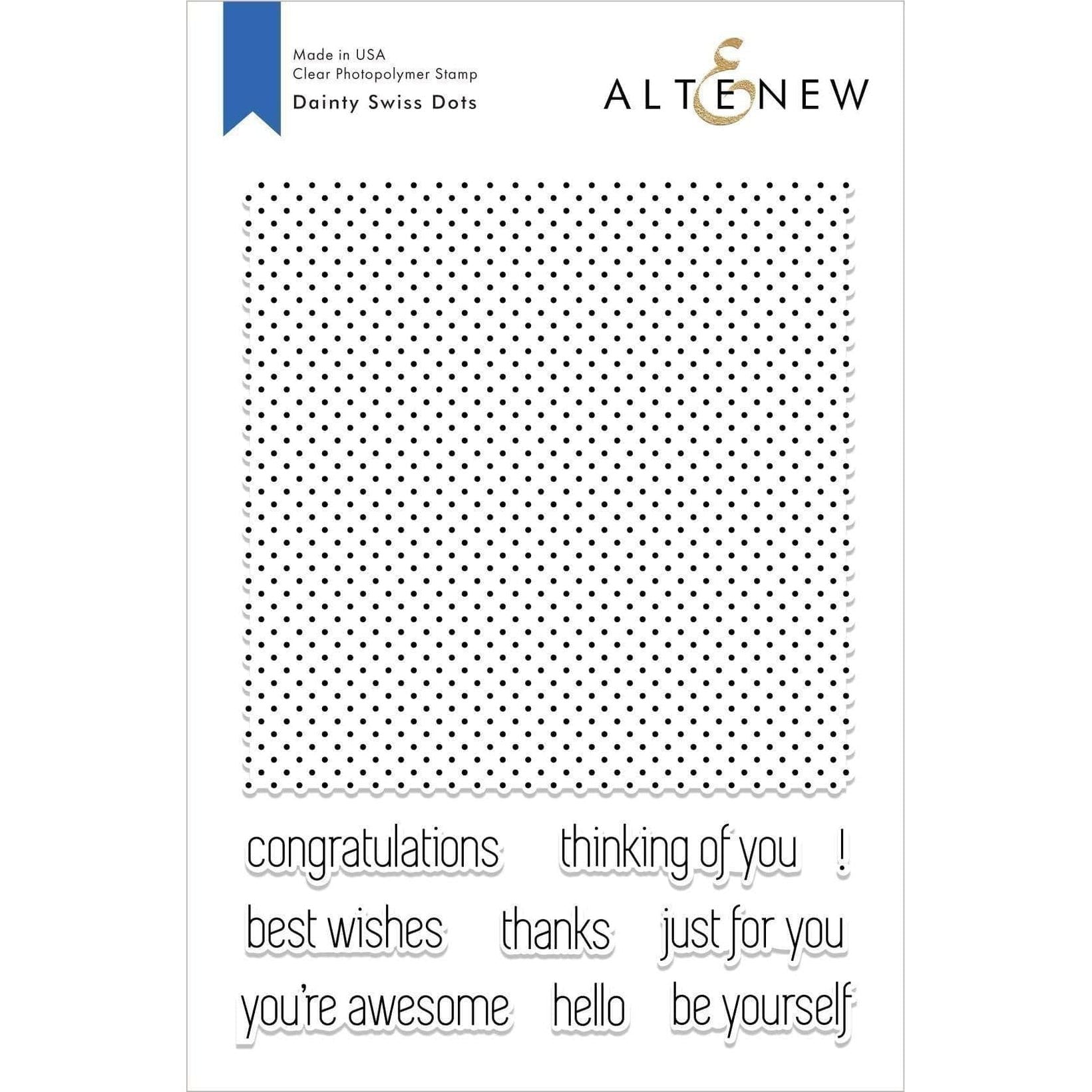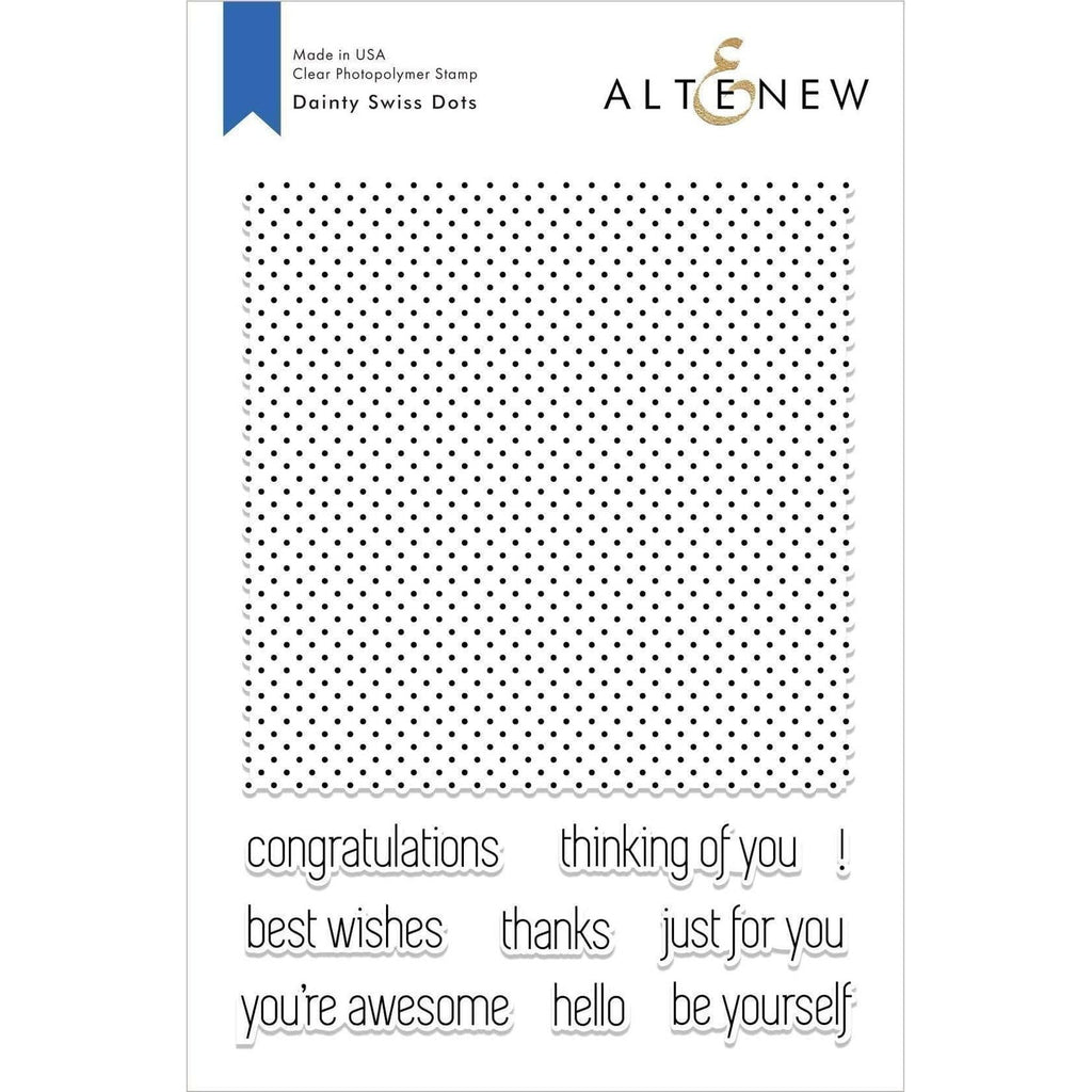 This large background stamp will cover the front of an A2 card with dainty Swiss dots. The sentiments which are included are uplifting and cheerful - perfect for creating a project anyone would love to receive!