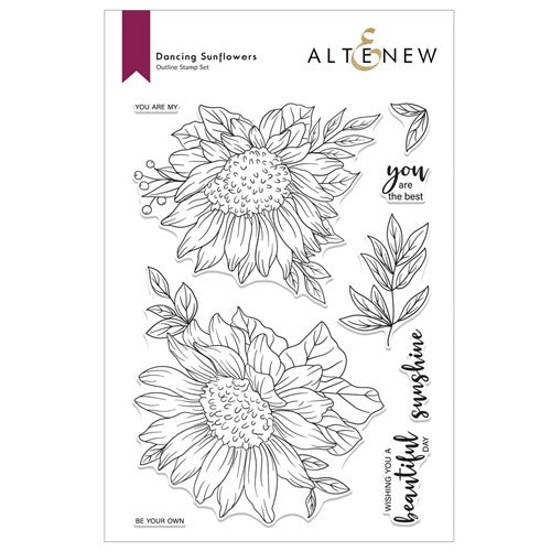 The Dancing Sunflowers Stamp Set showcases two gorgeous arrangements of sunflowers and leaves. It is sure to give a delightful bit of nature to your canvas. A leafy branch and a pair of leaves are included to complete the set. Once you have finished creating your piece of art, add one of the cheerful sentiments as a finishing touch.