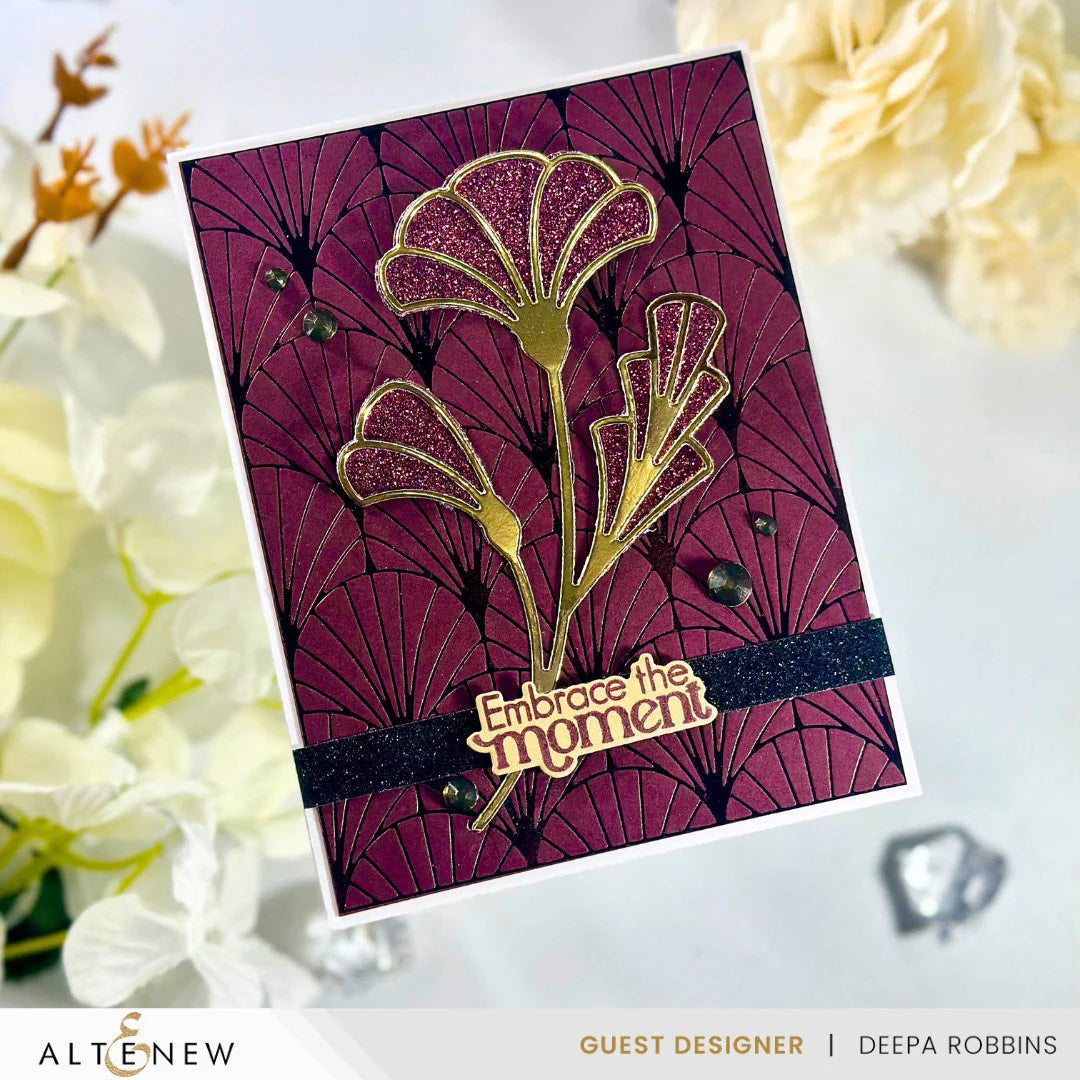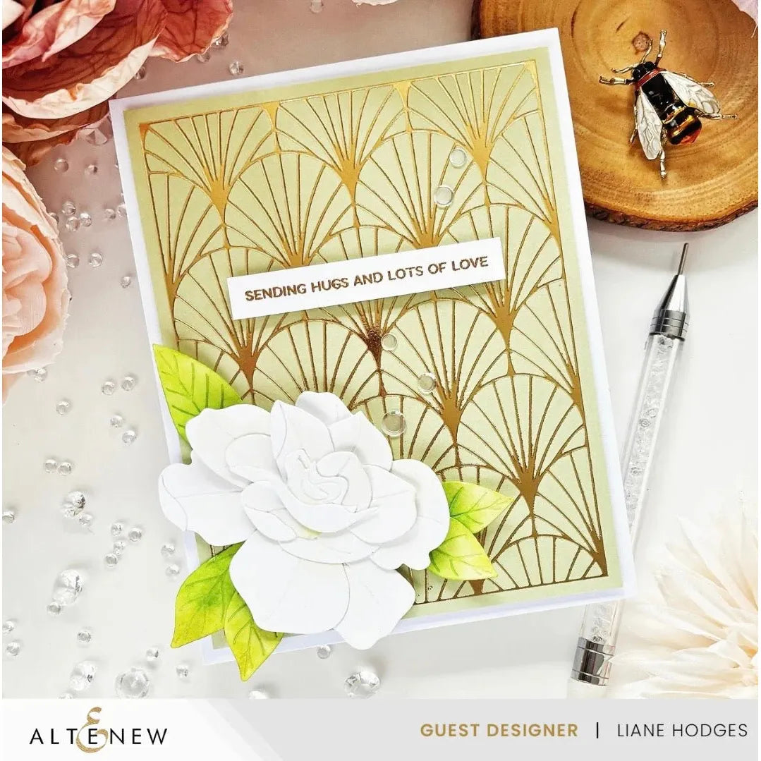 The Altenew Deco Fan Hot Foil Plate adds a touch of Art Deco elegance to your projects. Pair it with floral layering dies, stamps, sentiment dies, and more to create stunning designs. Simply choose your favorite hot foil roll, add your focal point and sentiment, and watch your project come to life with intricate, foil-accented details. With its durable construction and unique design, this hot foil plate is perfect for adding a touch of sophistication to your paper crafting projects. This hot foil plate is compatible with the Spellbinders Glimmer Hot Foil System and other Hot Foiling Machines.