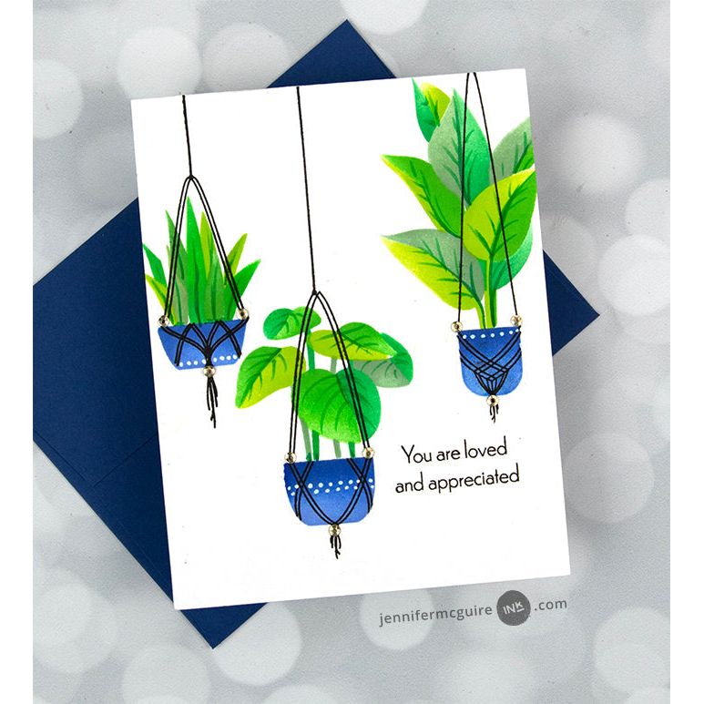 The stamp set features intricate details that elevate the images from the coordinating stencil set. With three different plant hangers and four heartfelt sentiments, crafters have the freedom to mix and match to their heart's content, creating unique combinations.