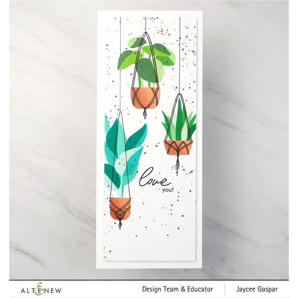 The Altenew Dynamic Duo Hanging Houseplants Clear Stamp and Stencil Set brings together a 3 x 4-inch stamp set and a coordinating and complementing stencil set. These sets not only coordinate seamlessly but also enhance each other, allowing crafters to create captivating projects with ease and versatility.