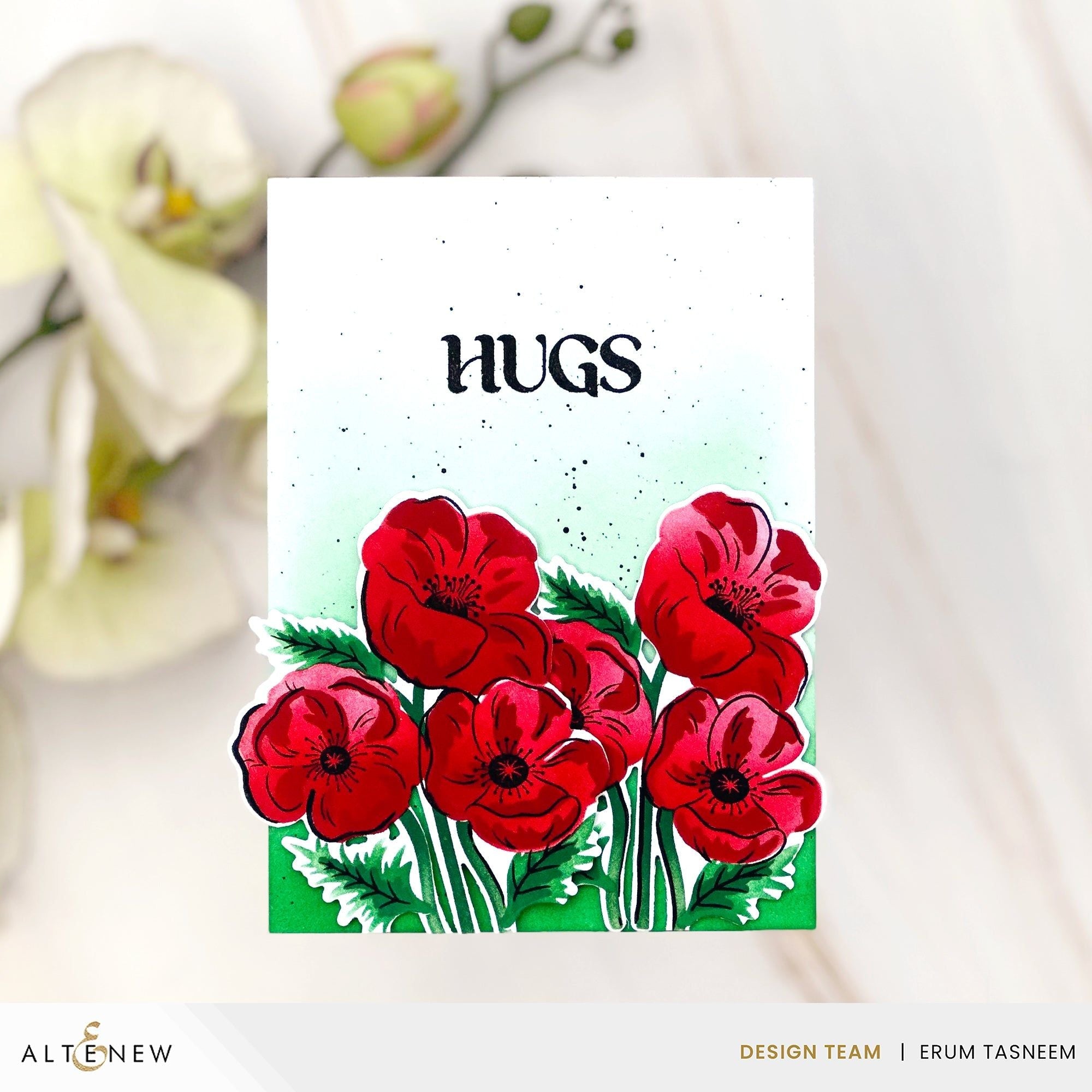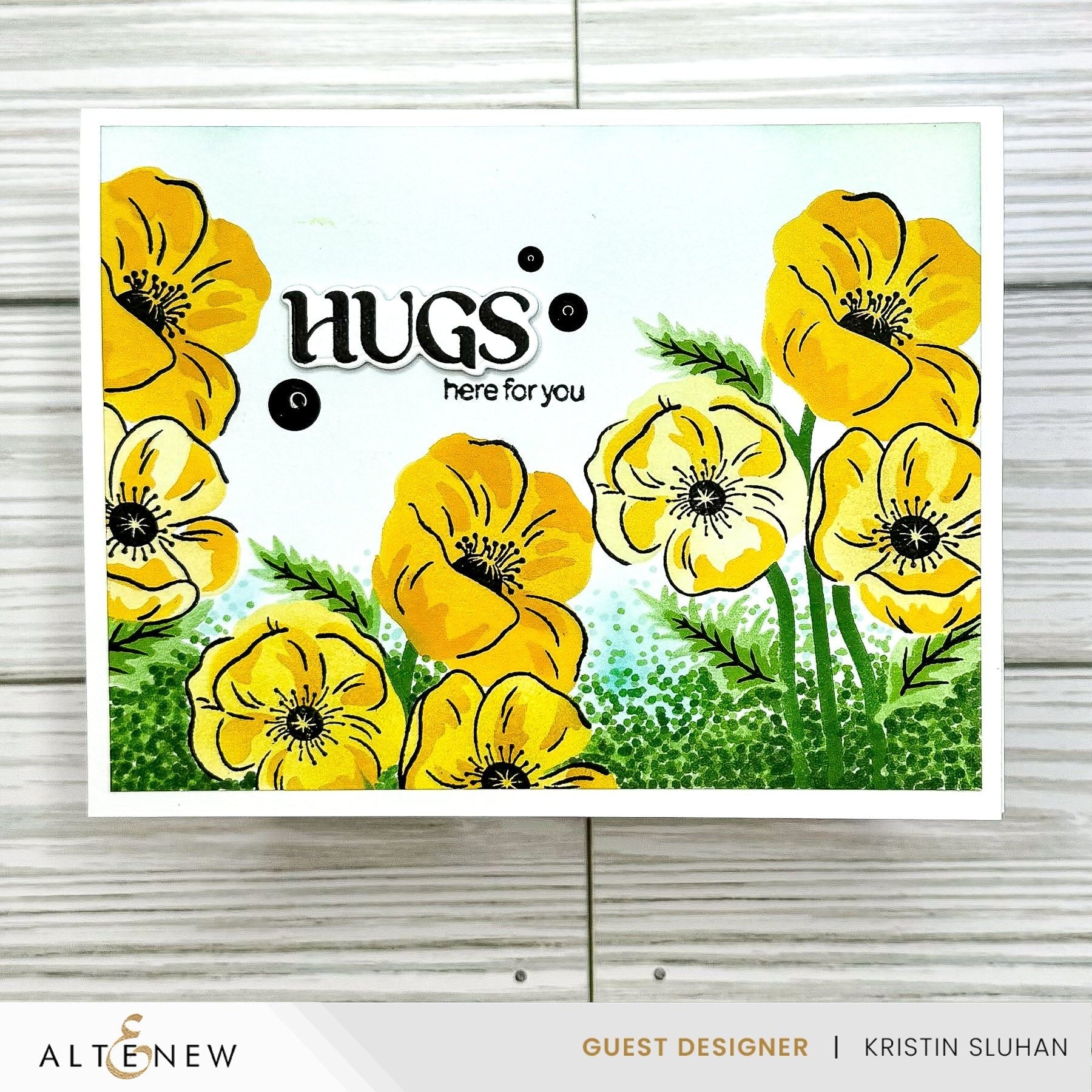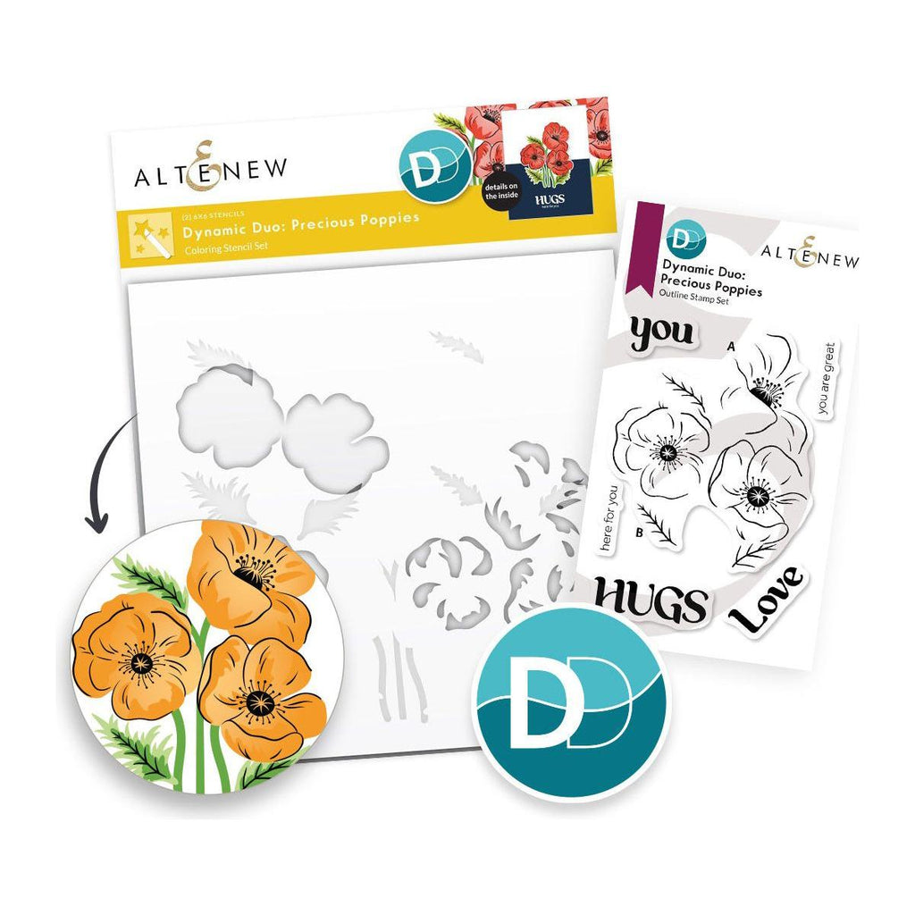 The Dynamic Duo: Precious Poppies Stencil Set crafts a charming display of poppies in bloom, with coloring sections for three flowers, their stems, leaves, and shadows. Combine it with the stamp set to craft a scene bursting with delight.
