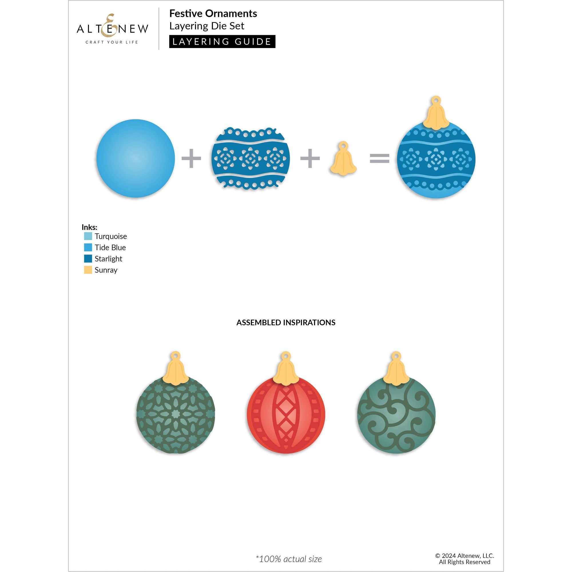 The Altenew Festive Ornaments Layering Dies add a touch of festive magic to your holiday cards! This versatile set includes six dies, featuring a circle base, four intricate patterns for layering, and an ornament cap to complete the look. It's perfect for pairing with holiday-themed sentiments, floral stamps, and more, allowing you to create beautifully detailed ornaments for your seasonal projects.