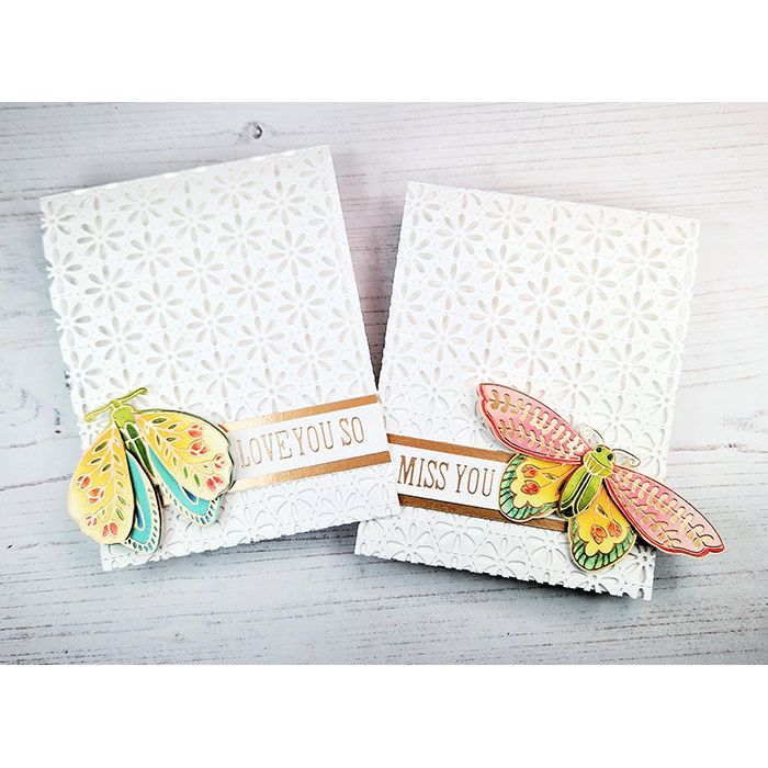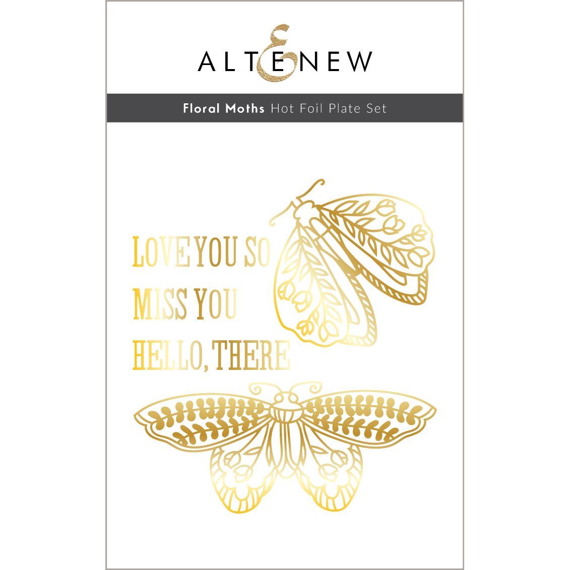 The Altenew Floral Moths Hot Foil Plate is designed to ignite your creative spark and let your shimmering dreams take flight. This hot foil plate features two exquisitely detailed moth designs and three sentiments inspired by the beauty of nature's flora and fauna. The combination of these elements offers a whimsical and enchanting blend that will inspire your crafting endeavors.