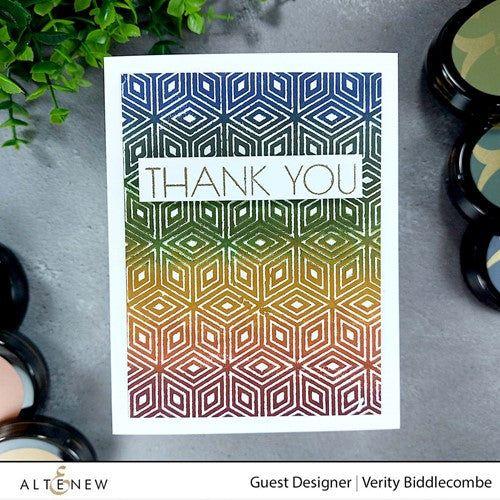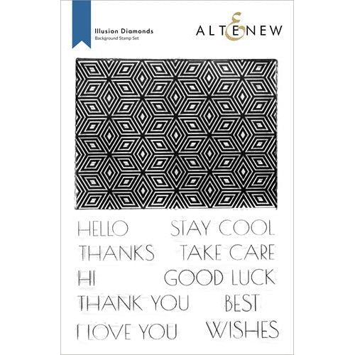 This geometric stamp set features a very cool and unique pattern that can be used as a background on your next project! It is repeatable, which means you can stamp it multiple times on a large surface for a seamless look. The background image is accompanied by versatile sentiments in a clean, modern font.
