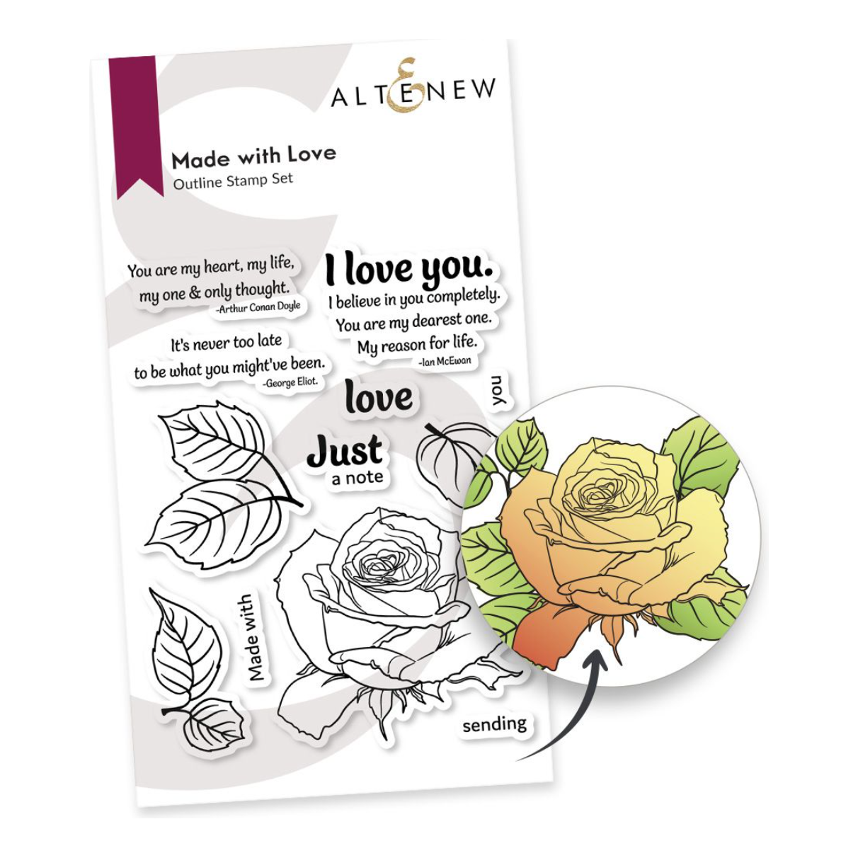 The Altenew Made with Love Clear Stamps elegantly combine the enduring symbolism of roses with the enchanting essence of love. Did you know that roses not only represent romance and love, but rosebuds also symbolize beauty and courage?