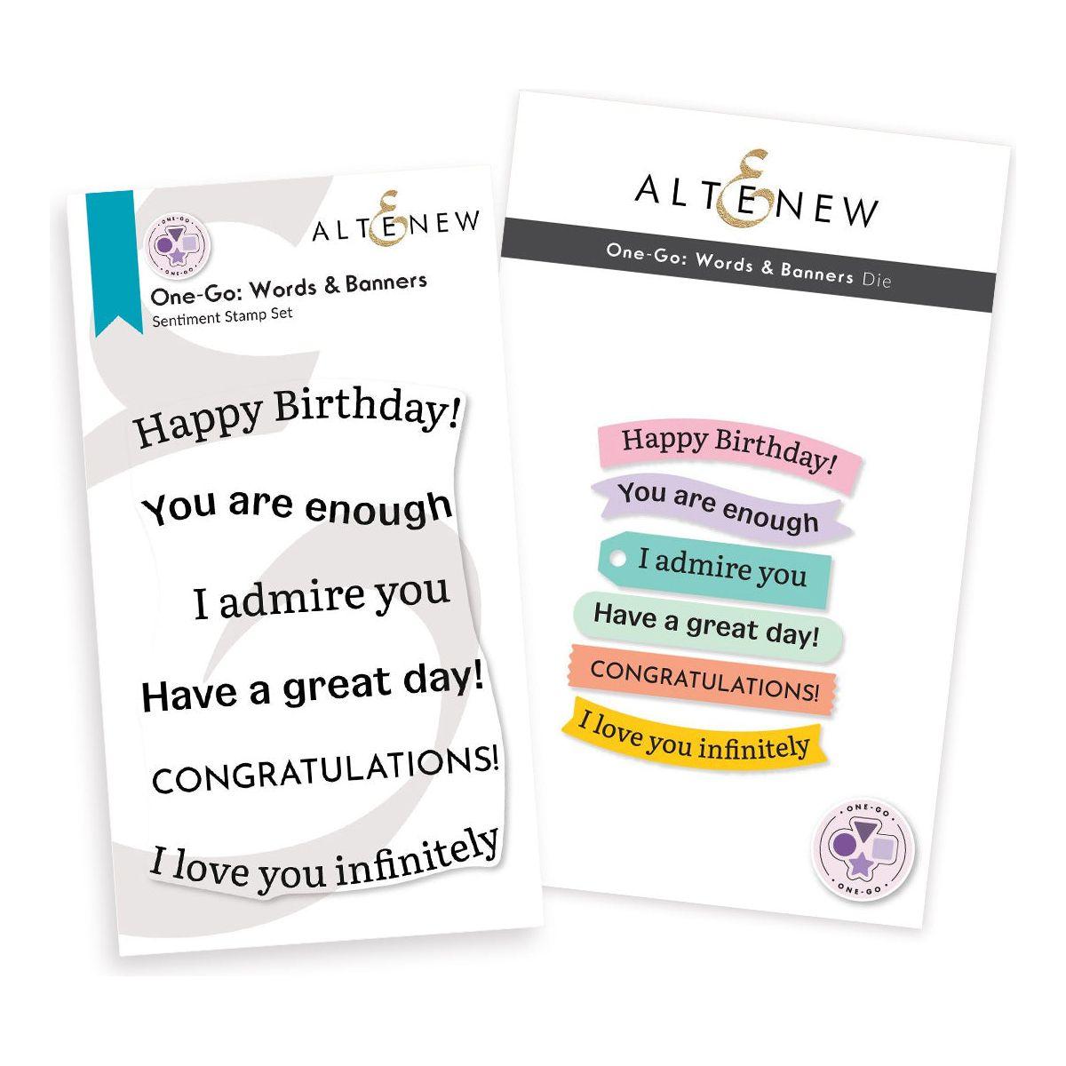 Presenting the Altenew One-Go Words and Banners Clear Stamp and Die Set, a convenient bundle designed to enhance your crafting experience!