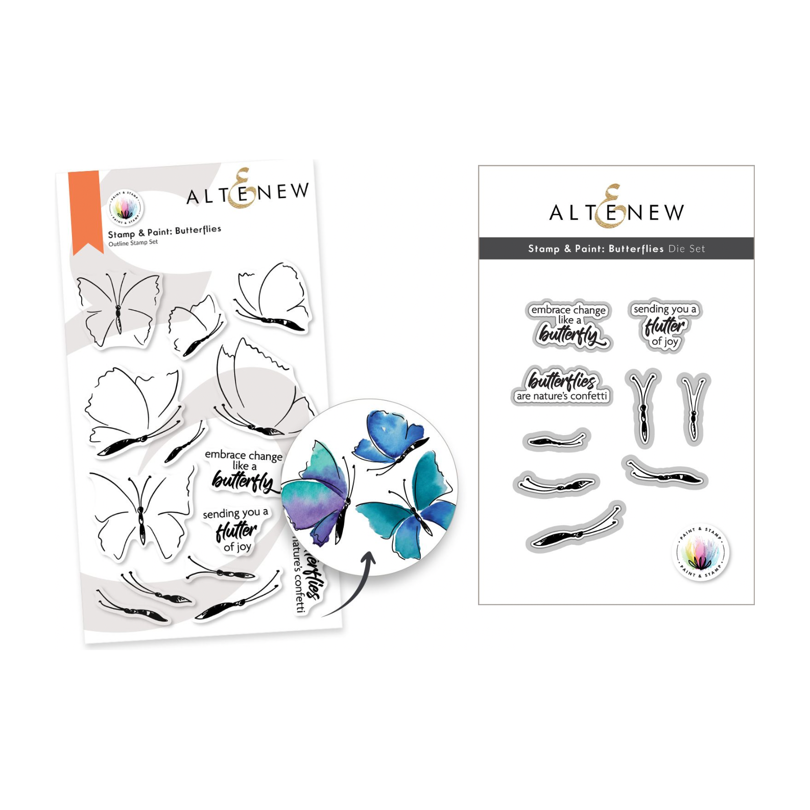 Introducing the Altenew Paint and Stamp Butterflies Clear Stamp and Die Set, a harmonious bundle merging creativity and versatility.