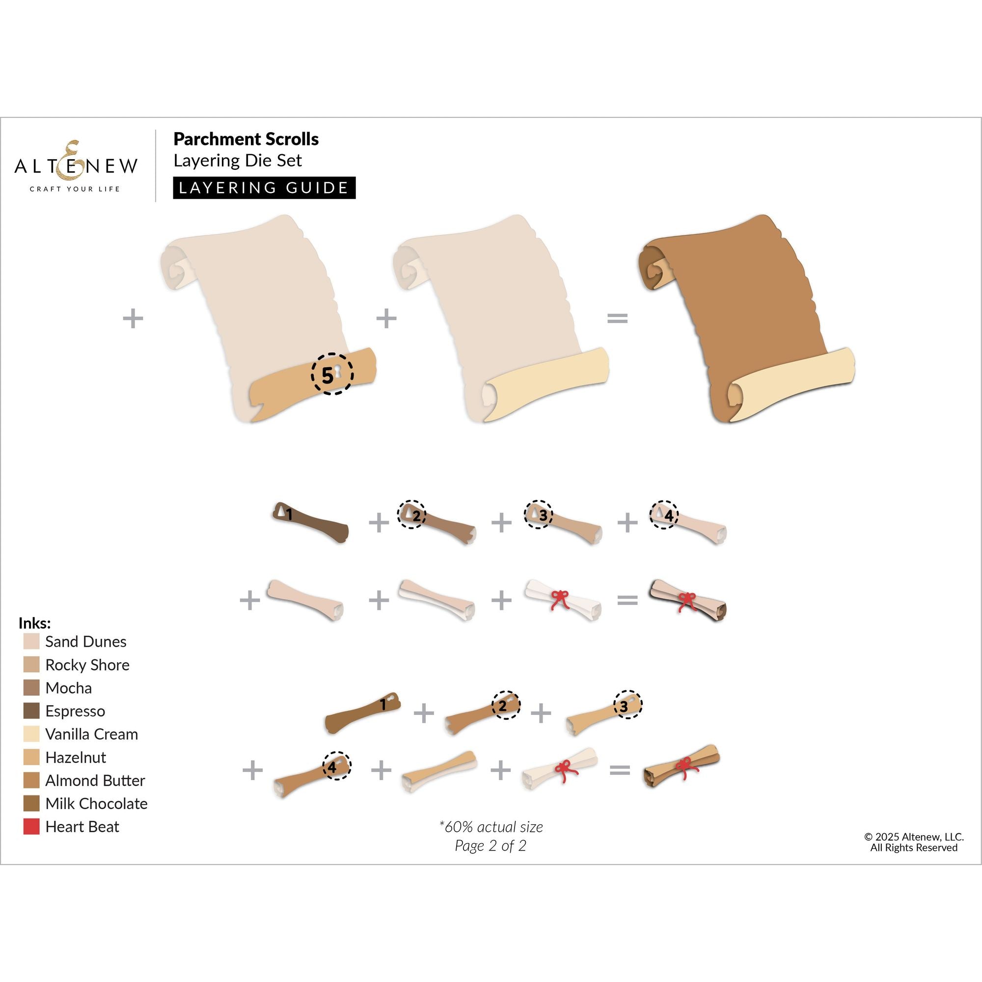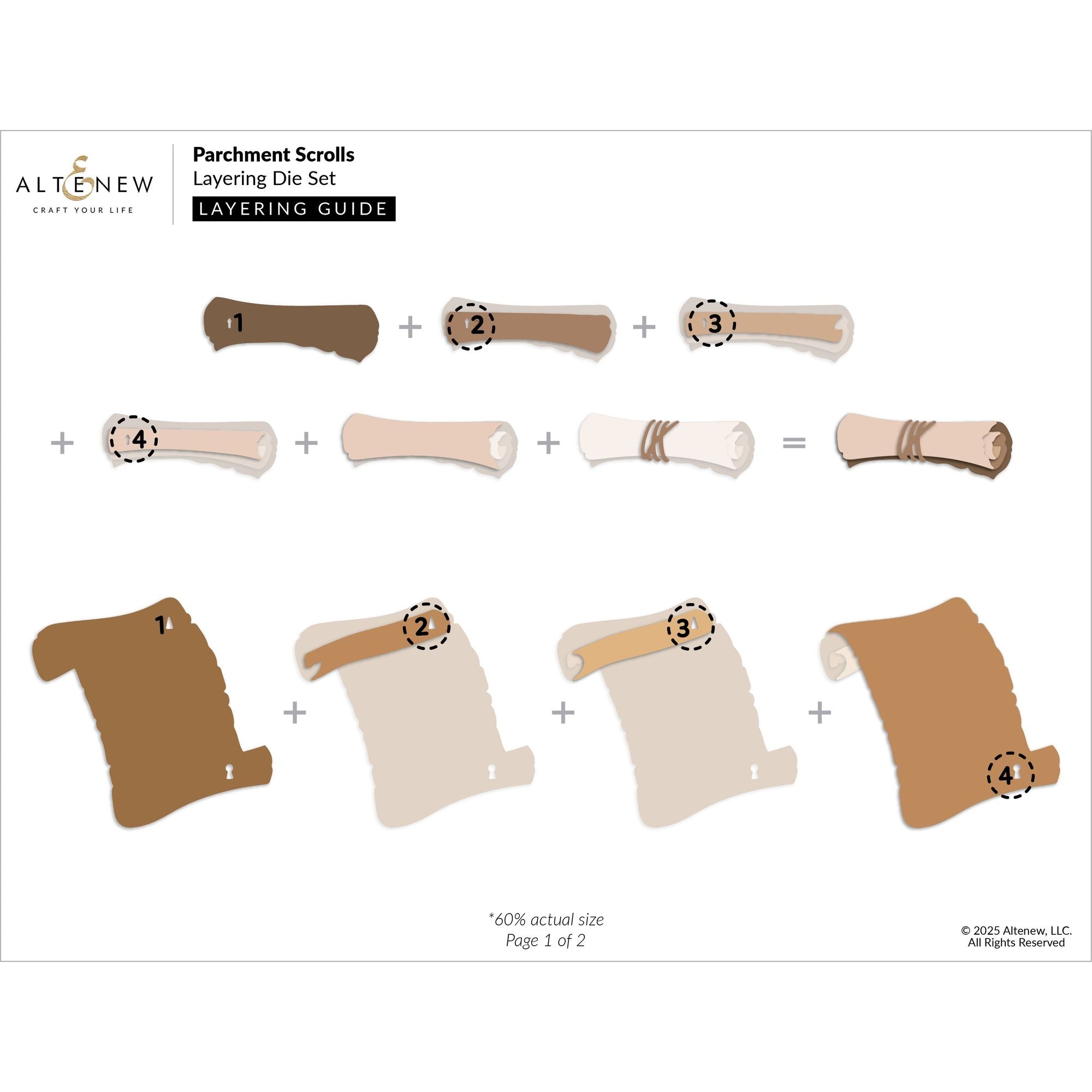 The Altenew Parchment Scrolls Layering Dies bring timeless elegance and vintage charm to handmade projects. This versatile set includes four layered parchment scrolls, perfect for adding a classic, old-world touch to cards, scrapbooks, journals, and DIY crafts.