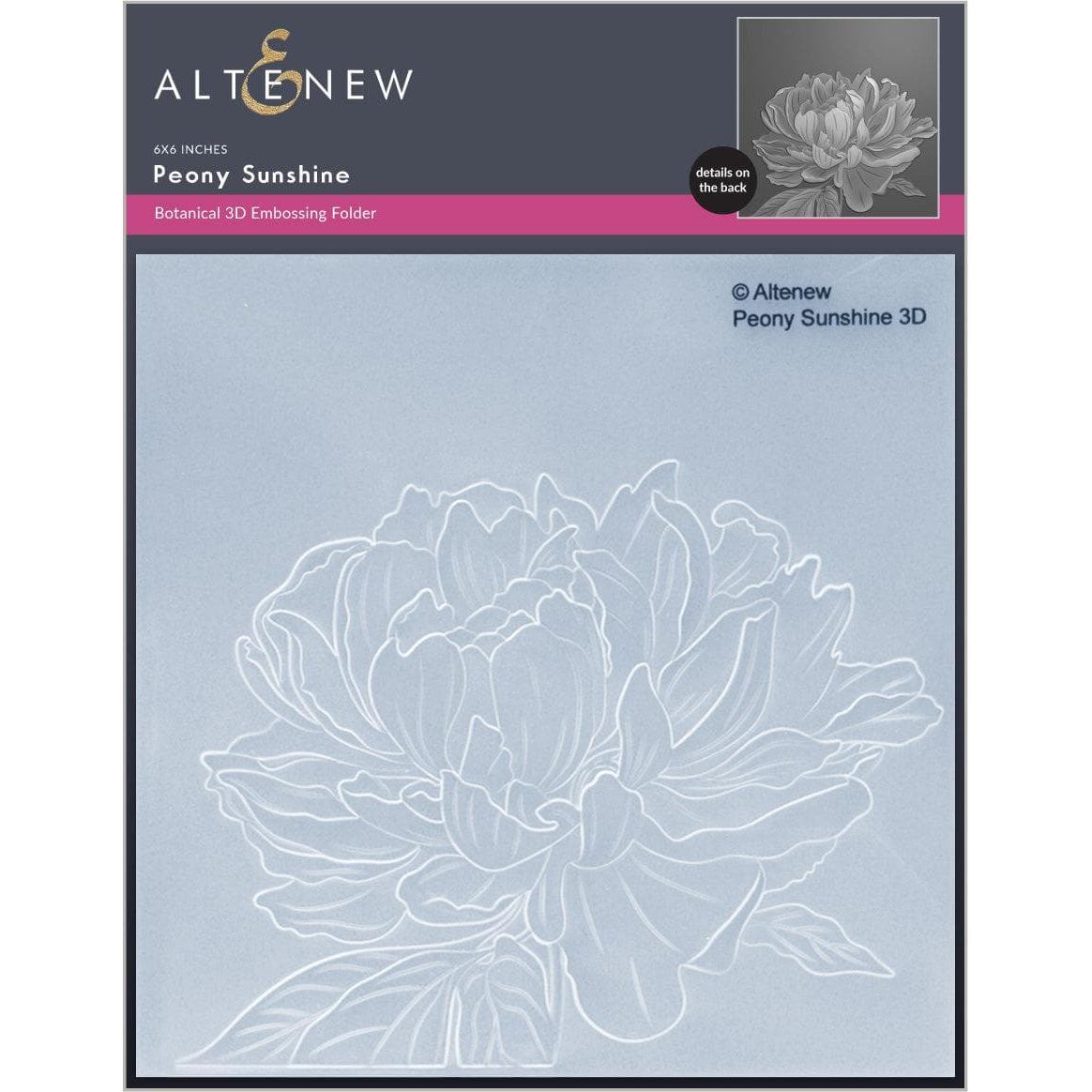 This 3D Embossing Folder features a large gorgeous peony in full bloom. The image created looks amazing as is, or you can use your favorite inks or coloring mediums to really make the image pop.