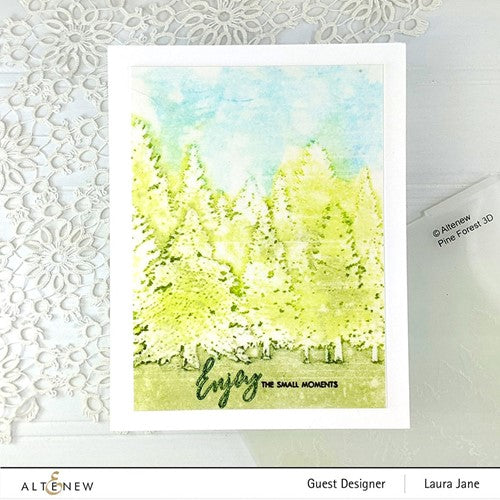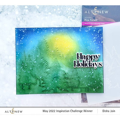 Add a touch of mystery to your paper crafts with this 3D embossing folder. It features a watercolored pine tree forest that can help to create a refreshing yet brilliant background for your projects. Turn it into a gorgeous summer morning or a mysterious foggy day with the coordinating stencils!
