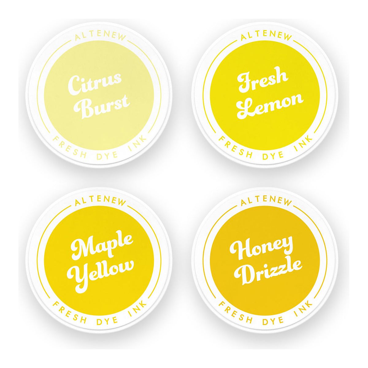 The Altenew Pocketful of Sunshine Fresh Dye Ink Pad Set introduces a delightful array of yellow shades within the Pocketful of Sunshine Color Family. Inspired by sunny and vibrant hues, these colors bring a cheerful touch to your projects. Honey Drizzle offers a warm golden tone, Maple Yellow brings a rich and earthy yellow shade, Fresh Lemon provides a bright and zesty yellow color, and Citrus Burst adds a pop of energetic citrusy hue. These vibrant shades are perfect for enhancing flowers, fruits, backgrounds, sceneries, and other nature-themed images.