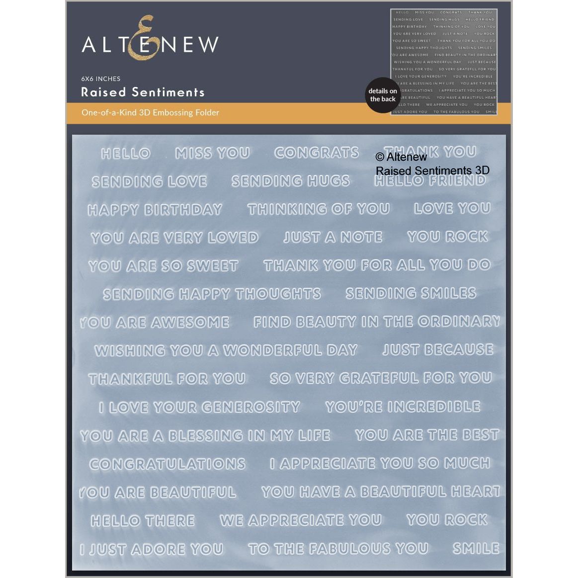 The revolutionary Raised Sentiments 3D Embossing Folder is a first-of-its-kind, sentiment-themed embossing folder that will transform the way you craft. Say goodbye to boring, two-dimensional greetings and hello to eye-catching, dimensional sentiments that will make your handmade cards stand out. Featuring a versatile collection of classic sentiments, this 6 x 6 inch embossing folder is the ultimate time-saving tool.