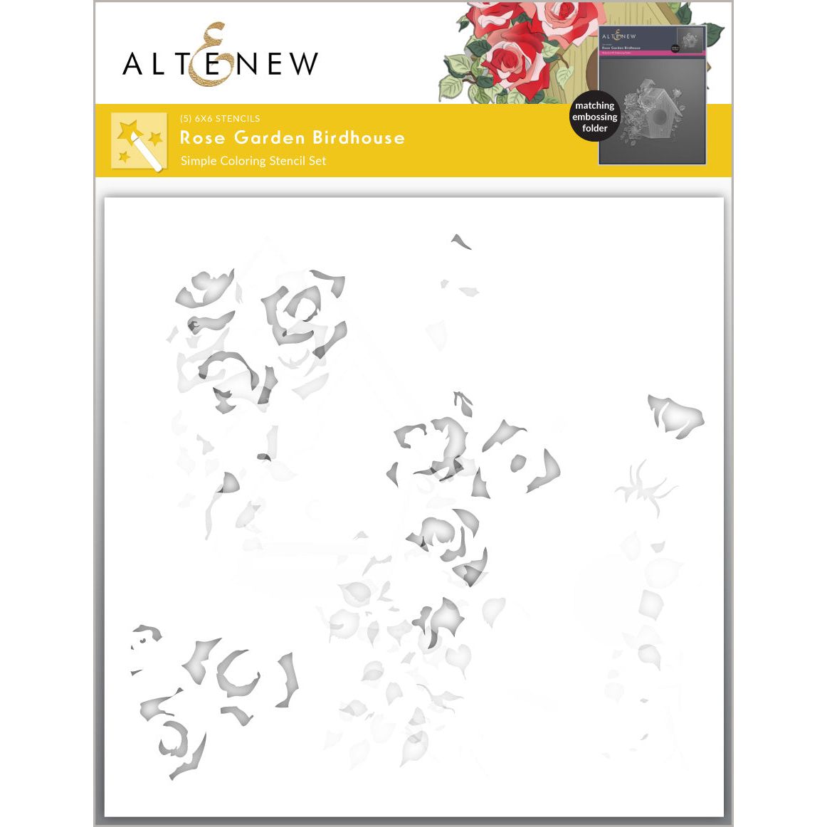 Make your projects stand out with the Altenew Rose Garden Birdhouse Stencil Set. This versatile set of five layering stencils is designed to work seamlessly with the embossing folder, enabling you to add vibrant colors and rich textures to your creations. The stencils are 6x6 inches.