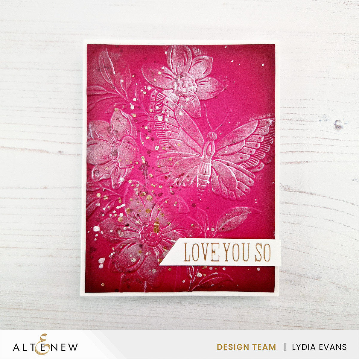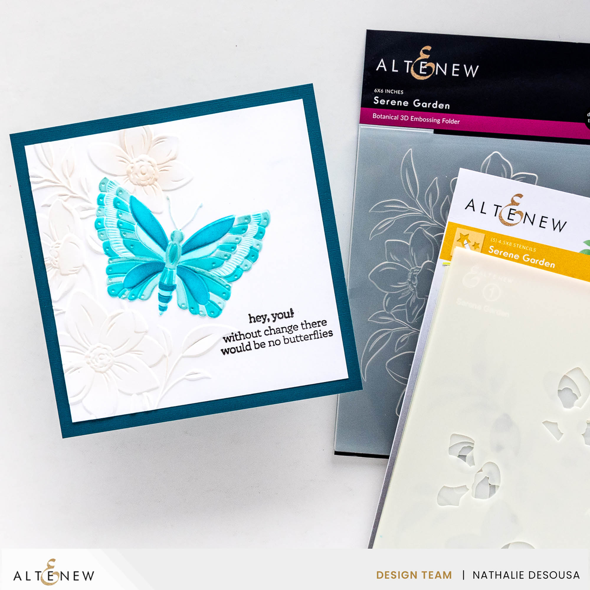 The Serene Garden 3D Embossing Folder features a beautifully detailed design of a delicate butterfly resting on a flower, perfect for adding elegance to your crafting projects. Measuring 6 x 6 inches, this embossing folder creates deep, intricate textures that bring your paper to life. For even more fun, you can use the Altenew Serene Garden Simple Coloring Stencil Set ALT10709 to enhance your projects. Sold Separately.