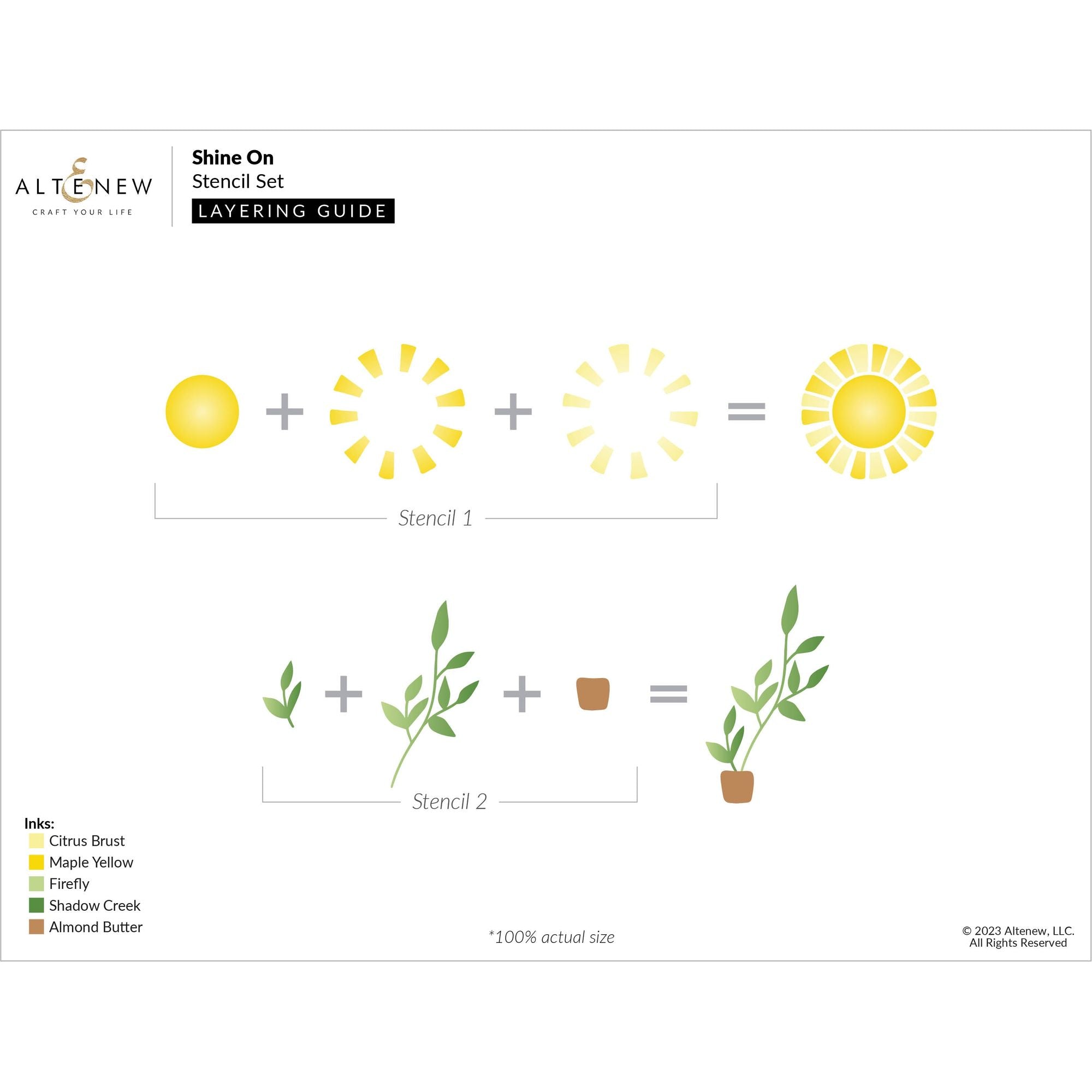 The Altenew Shine On Stencils, in collaboration with the talented Amy Tangerine, brings her signature whimsical style to your art projects. This stencil set includes two 6x6 inch stencils with bold, charming designs that add a touch of fun and creativity to any paper craft. Perfect for layering and adding a pop of interest, these versatile stencils are ideal for enhancing cards, scrapbook pages, and other creative projects. This set of stencils coordinates with the Shine Bright Clear Stamp Set ALT7893, sold separately.