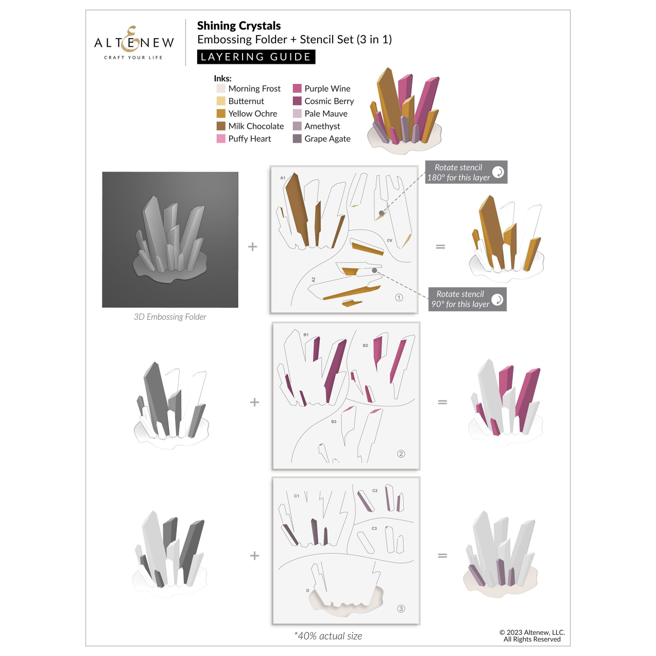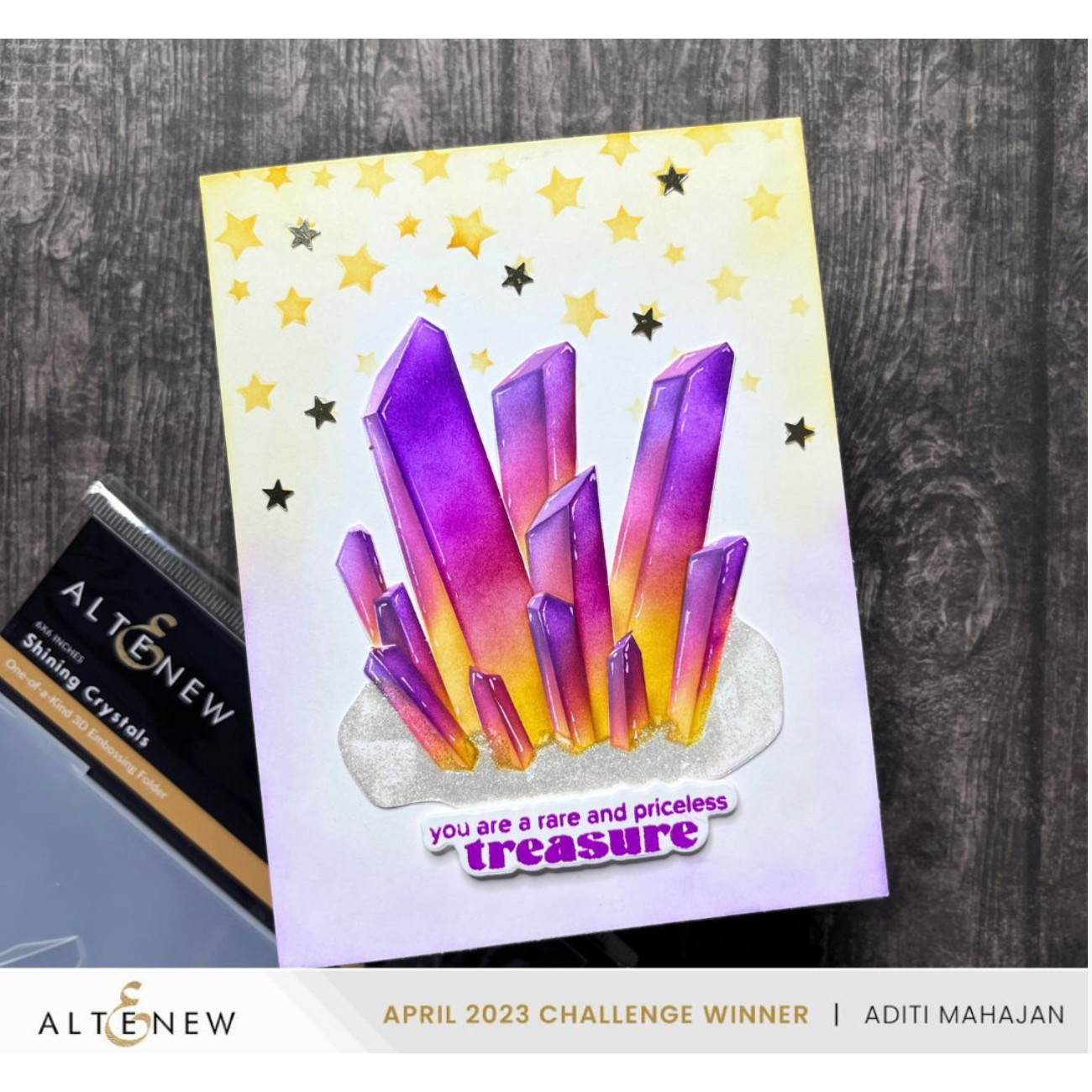 The Altenew Shining Crystals 3D Embossing Folder offers an immersive experience in the captivating charm of crystals. With ease, it converts your paper into a stunning 3D texture that evokes the appearance of clustered crystals. This embossing folder measures 6x6 inches, adding a touch of dimension and visual interest to your projects.