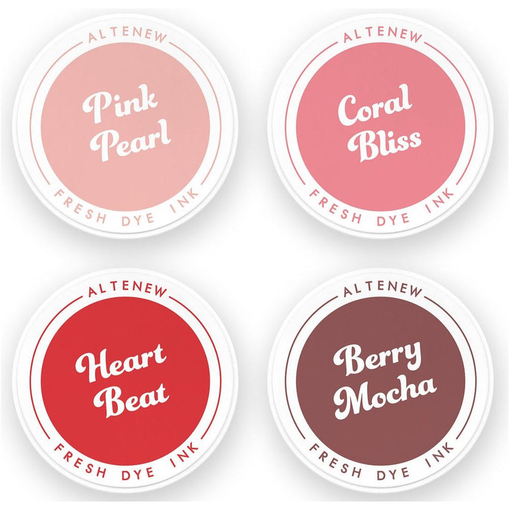 Achieve beautiful and realistic results with the Altenew Tea Party Fresh Dye Ink Pad Set. This set includes four shades, from soft coral to red-brown, perfect for layering and creating warm red images. With high-viscosity dye inks and a modern, custom-designed round case, these inks are a must-have for nature-themed stamping. Four full sized felt pad Dye ink pads included. These round pads measure 2.75 inches in diameter.