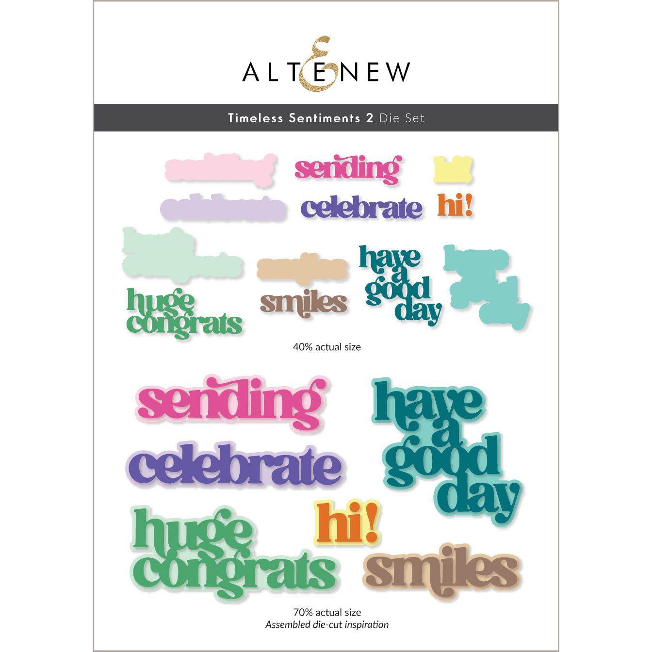 The Altenew Timeless Sentiments 2 Die Set offers a versatile collection of classic sentiments suitable for various occasions. Featuring a sophisticated serif font style, these dies seamlessly complement any design, whether it's floral, patterned, or abstract.