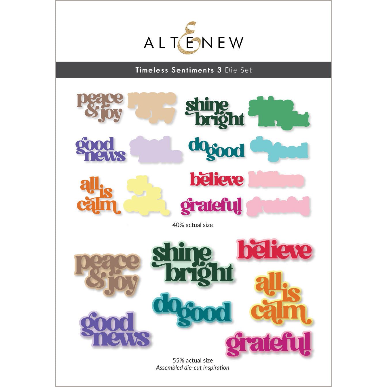 The Altenew Timeless Sentiments 3 Holiday Edition Dies are the latest addition to the popular Timeless Sentiments series. Featuring classic sentiments in a sophisticated serif font, these dies pair effortlessly with any design, from florals to abstract patterns, making them perfect for a wide range of crafting projects during the holiday season and beyond. The set includes 14 dies in total.