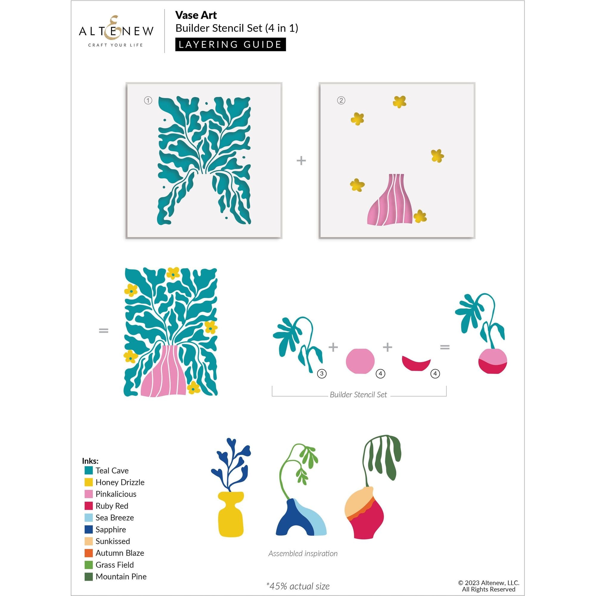These stencils provide a versatile and creative tool for adding depth and dimension to your crafting projects. Whether you're making cards, home decor items, or any other paper-based crafts, the Altenew Vase Art Stencil Set offers a wonderful way to infuse your creations with playful foliage and modern vase designs.