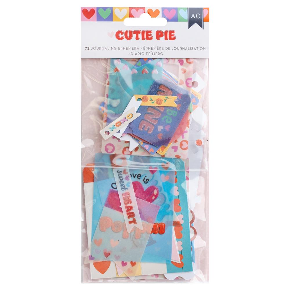 Introducing the American Crafts Cutie Pie Journaling Ephemera Pack! This pack offers 72 delightful die-cut ephemera pieces, some featuring elegant foil accents, all part of the Cutie Pie Collection from American Crafts. Among these pieces, you'll find hearts, banners, ticket shapes, postage stamp shapes, tags, and more, with some providing space for journaling. These versatile journaling ephemera pieces are perfect for enhancing your cards, scrapbook pages, tags, journals, and other paper crafting projects, allowing you to add your personal touch and creativity to your designs.