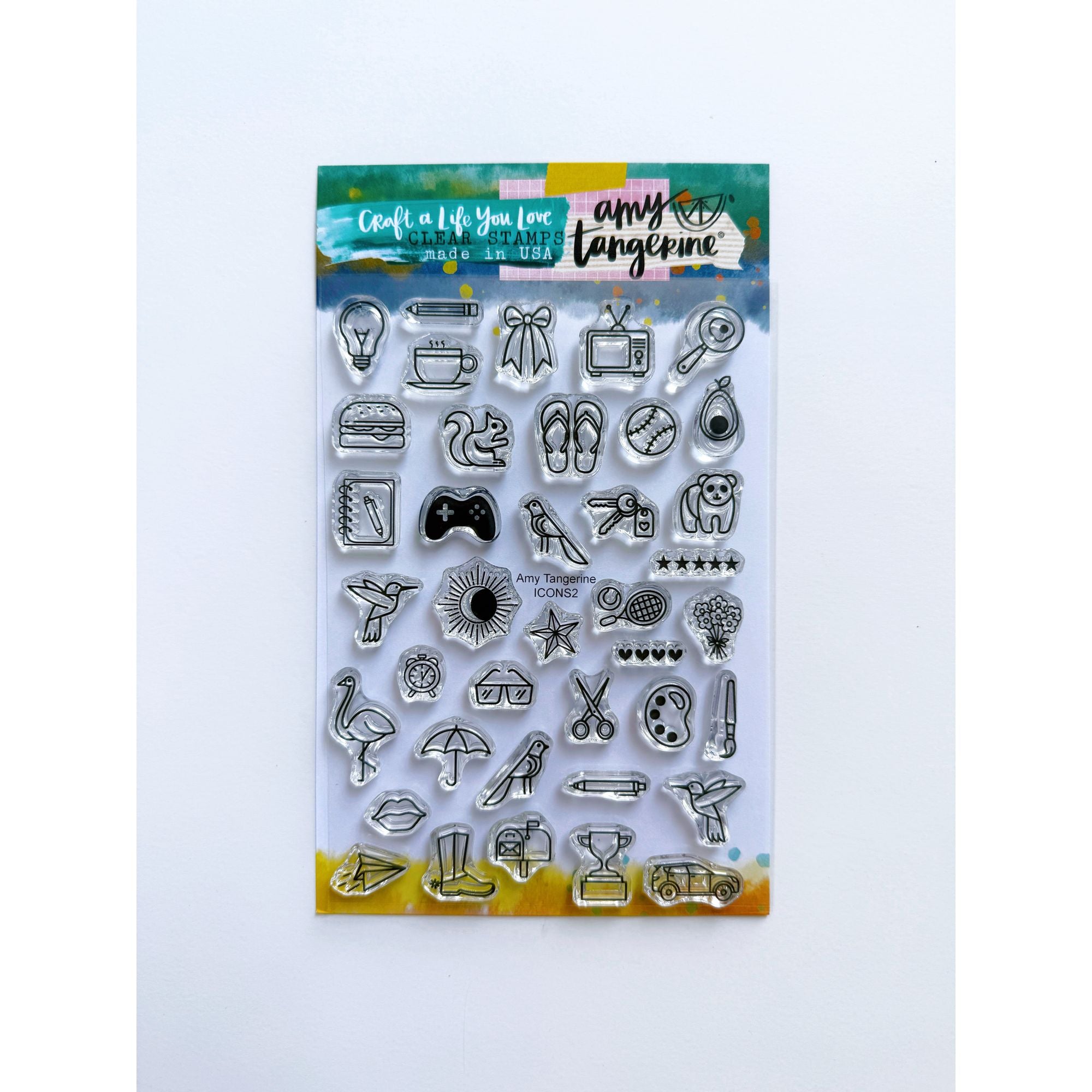 Expand your creative toolkit with this comprehensive 4x6 inch stamp set from Amy Tangerine. Featuring 35+ meticulously designed icons including lightbulbs, food items, animals, art supplies, and everyday objects. Perfect for personalizing cards, enhancing planner layouts, or adding distinctive elements to any paper crafting project. These versatile stamps deliver professional-quality impressions while adding a touch of playful charm to your creative work.