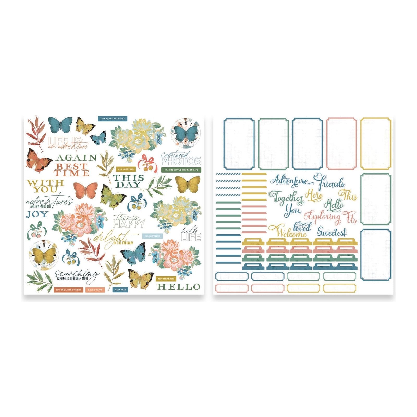 Arden Creative Studio Page Starters Ephemera Pack was designed by Katie Pertiet for the Page Starters Collection. This pack includes 117 die-cut pieces in a watercolor style, featuring tags, labels, tabs, florals, foliage, bows, berries, and butterflies. Sentiments include "Life is an adventure," "again," "best time," "this day," "captured photos," "hello life," "adventures are my favorite," "delight in the ordinary," and more. Made from sturdy 250gsm cardstock, these acid and lignin-free pieces are ideal for cards, scrapbooks, journals, tags, and other creative projects.