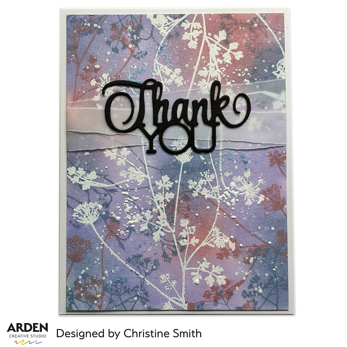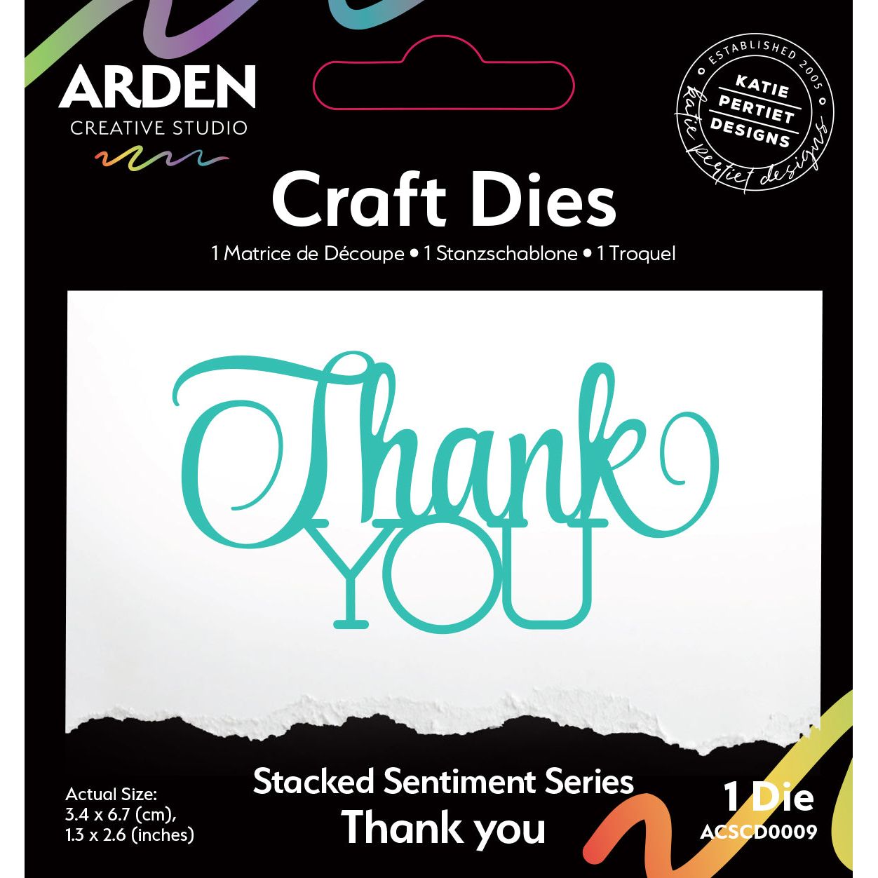Arden Creative Studio Stacked Thank You Die was designed by Katie Pertiet for the Sentiment Series. This single die features the words "Thank you" in a stylish mix of script and straight fonts, perfect for adding a polished sentiment to your cards, scrapbook pages, and other creative projects. Compatible with most leading die-cutting machines (sold separately). Die measures approximately 1.3 x 2.5 inches.