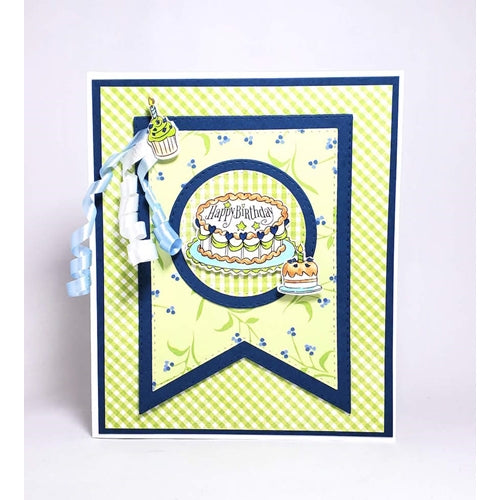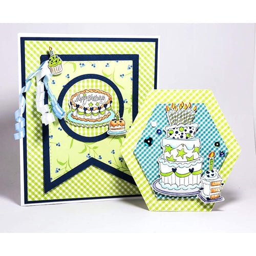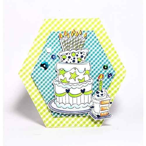 Happy Birthday to you! This stamp and die set takes the cake with 6 styles of birthday cakes, one slice of cake, a cupcake, and individual candle for celebrating that most special day! Approximately 4x8 inch clear stamp with select coordinating dies.