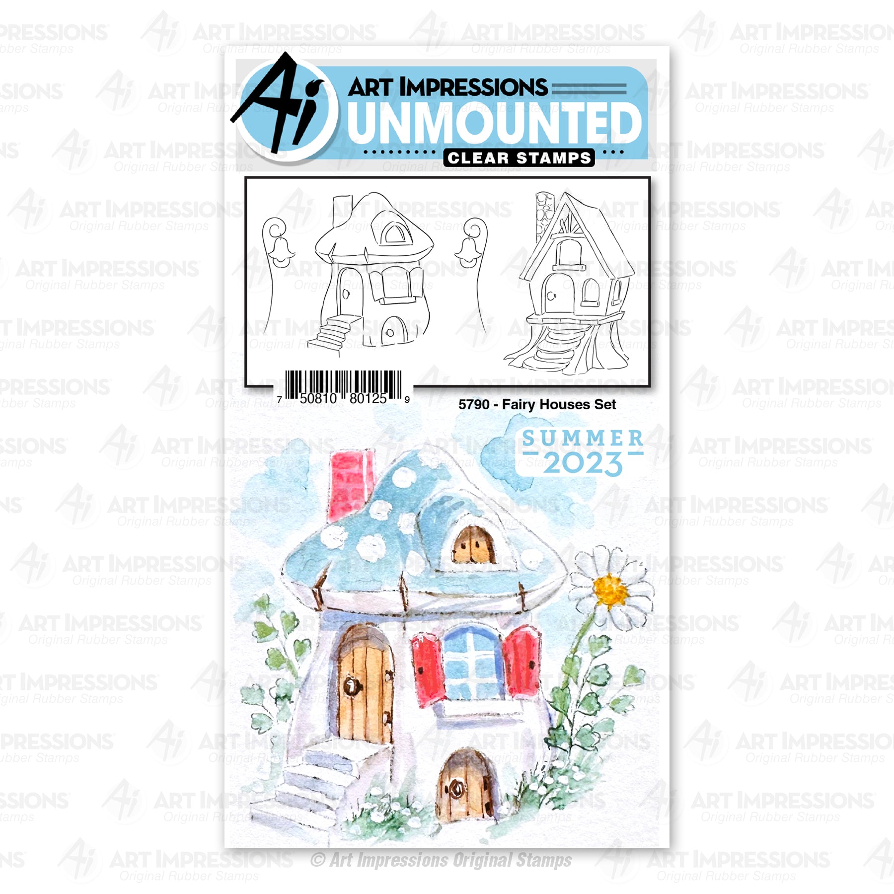 Create one-of-a-kind creations with this Art Impressions Fairy Houses Clear Stamp set. This 4-piece set includes two charming options for making a base for your fairy house - perfect for the Bonnie Krebs fan looking to learn tips and tricks for watercoloring. Make memories with your loved ones that will last a lifetime. Overall stamp set is approximately 4x4 inches.