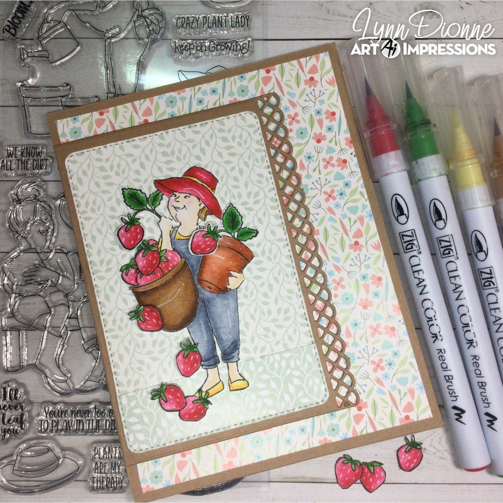 Become a part of the Art Impressions community with the Gardening Girlfriends Clear Stamps! This 3.75 x 7.75 inch 17-piece set features girlfriends in gardening poses with heartwarming sentiments about gardening and friendship. Add a personal touch with watercolor foliage or flower stamps to any pot or container. Let's get creative and grow together! Words and sentiments included: