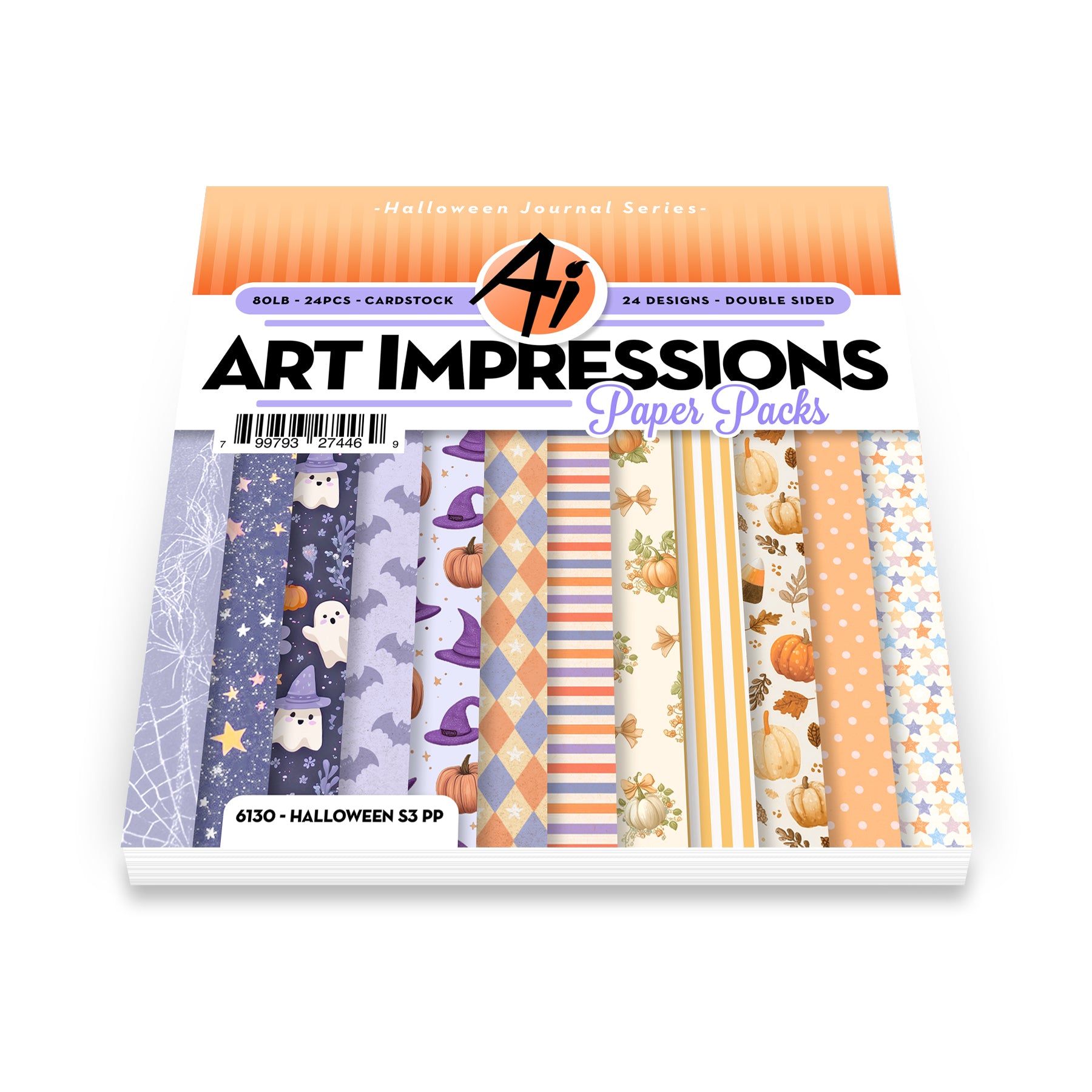 Celebrate spooky season with the Art Impressions Halloween 6x6 Inch Paper Pack! Featuring 24 double-sided sheets with 24 unique designs, this playful collection includes everything from lilac spider webs and starry skies to ghosts, bats, pumpkins, and candy corn. Crafted on sturdy 80lb cardstock, these vibrant patterns combine orange, purple, blue, and more to add festive charm to your crafts, cards, and decorations. Perfect for trick-or-treat creativity!