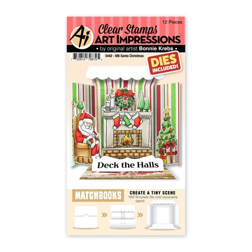 This clear stamp and dies set includes all of the accessories needed to make your Matchbook Santa Christmas scene! The sentiment for this set says Deck the Halls.