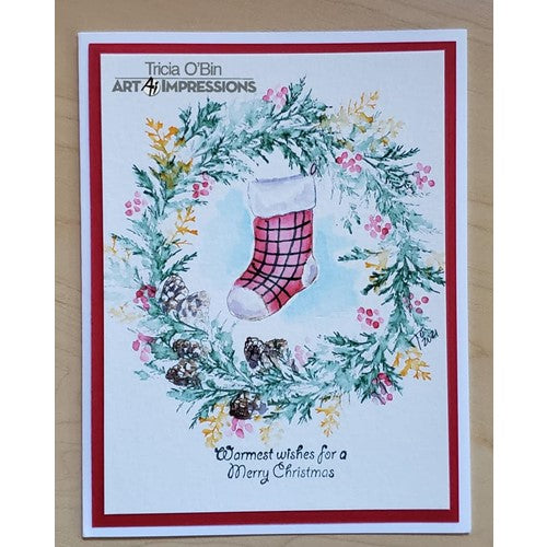 Art Impressions Watercolor CHRISTMAS WREATH Cling Cushion Stamps 5472