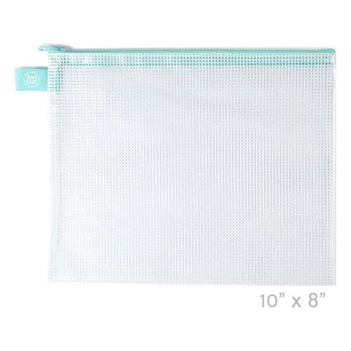 These 10 x 8 inch Small Aqua Zippered Vinyl Mesh Pouches are perfect for your organizing needs. They are available in two sizes and colors to store and protect scrapbook items, knitting projects, cross-stitch projects, documents and more...the possibilities are endless. These pouches are made of clear vinyl reinforced with vinyl mesh and a zipper closure. Their see through sides make it easy to find whatever is inside and they are water-resistant and durable.