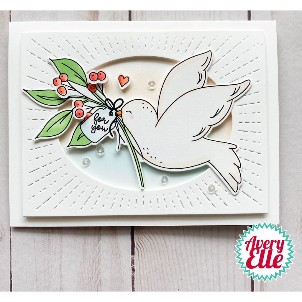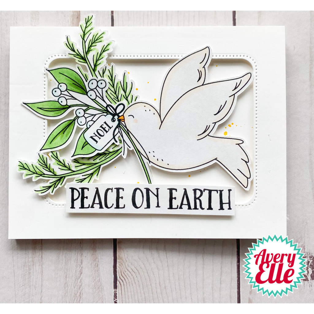 Avery Elle presents Peace on Earth Clear Stamps, a beautiful and serene set featuring a flying dove holding an olive branch. This set allows you to create projects with a peaceful and tranquil vibe, accompanied by lovely sentiments that are perfect for the holiday season. There are a total of 20 stamps in this set.