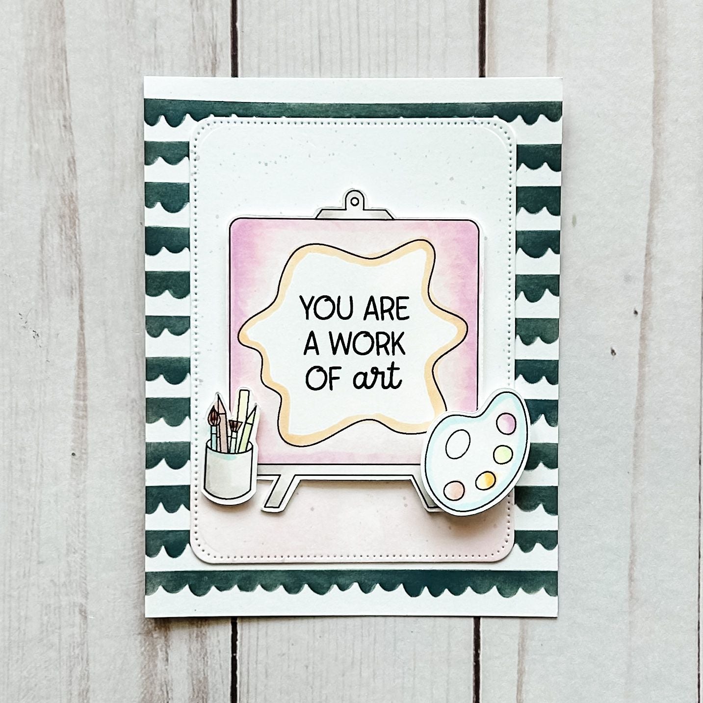 - "You are a work of art" sentiment stamp: 1.125 x 1 inch