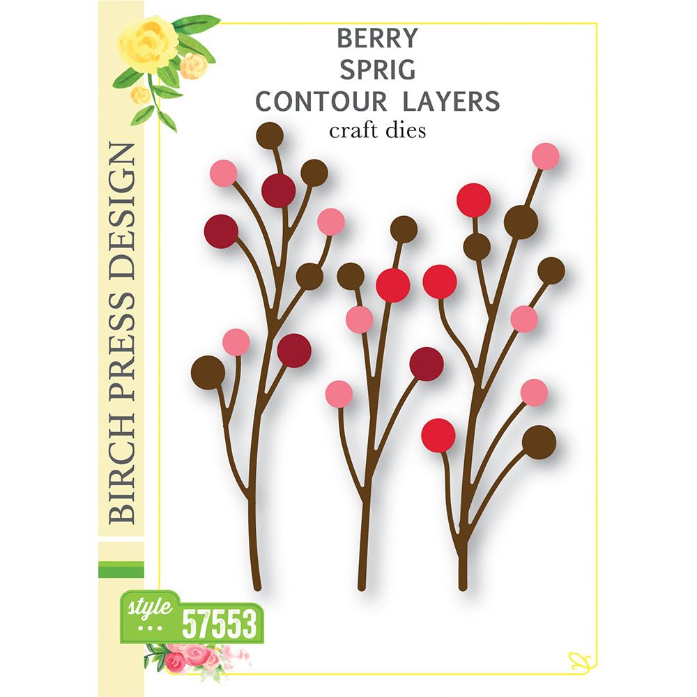 The Birch Press Design Berry Sprig Contour Layers Dies from the Winter Elegance Collection are made from durable steel and compatible with nearly all die-cutting machines. These versatile dies can be used on materials such as cardstock, felt, fabric, or shrink plastic, giving you the flexibility to cut, stencil, emboss, and bring your creative ideas to life. The set includes two wafer-thin dies that cut out 19 designs, including berries measuring approximately 0.2 x 0.2 inches (8) and 0.3 x 0.3 inches (8), along with sprigs measuring 1.3 x 4.1, 1 x 3.3, and 1.3 x 3.9 inches. These twigs with berries are perfect for layering and adding dimension to your projects.