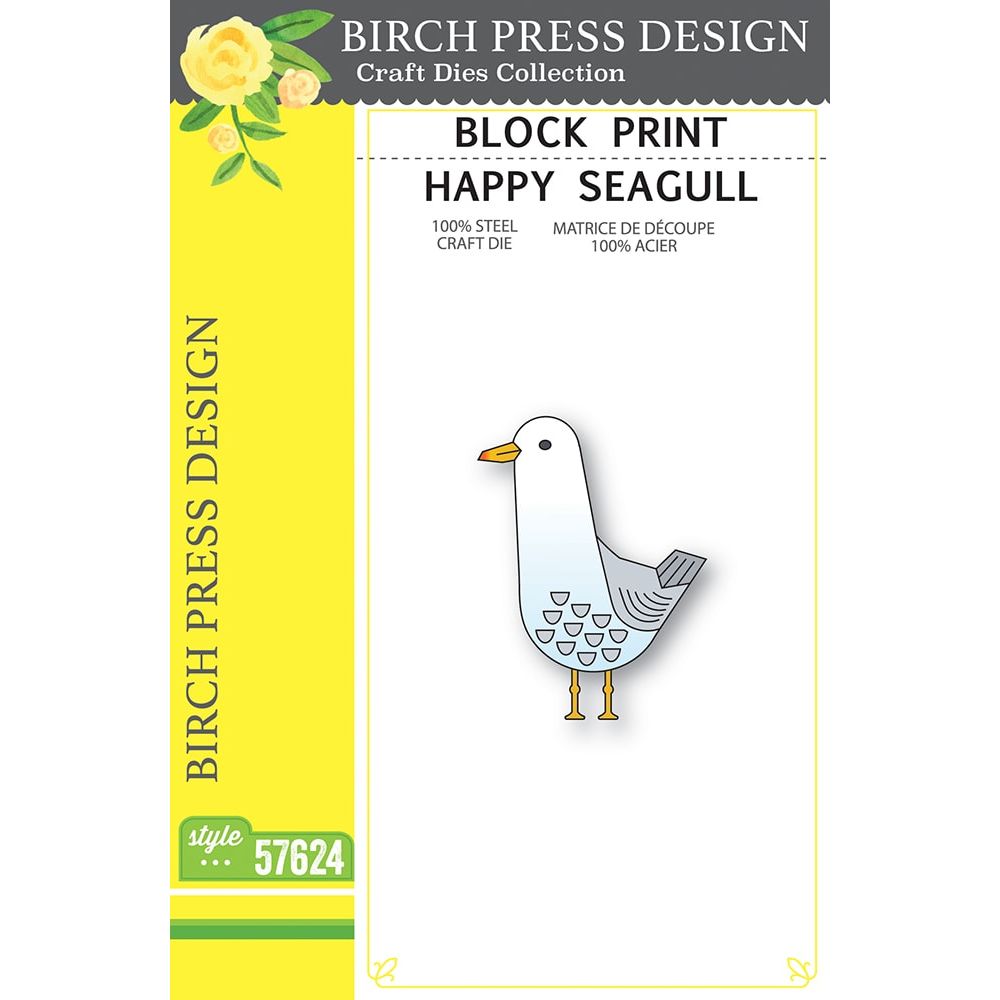 Birch Press Design Block Print Happy Seagull Dies, from the Tide Cool Collection, are crafted from durable steel and designed to work seamlessly with most die-cutting machines. These wafer-thin dies cut effortlessly through cardstock, felt, fabric, and shrink plastic, making them a great addition to your crafting supplies. This set includes 3 dies that cut 5 individual pieces, allowing you to assemble an adorable sea bird with charming layered details. Assembled size is approximately 1.6 x 2.2 inches. Pairs well with Birch Press Design Waterfront Pilings Dies (57618) to create whimsical coastal scenes—perfect for cards, tags, journals, and mixed media projects.