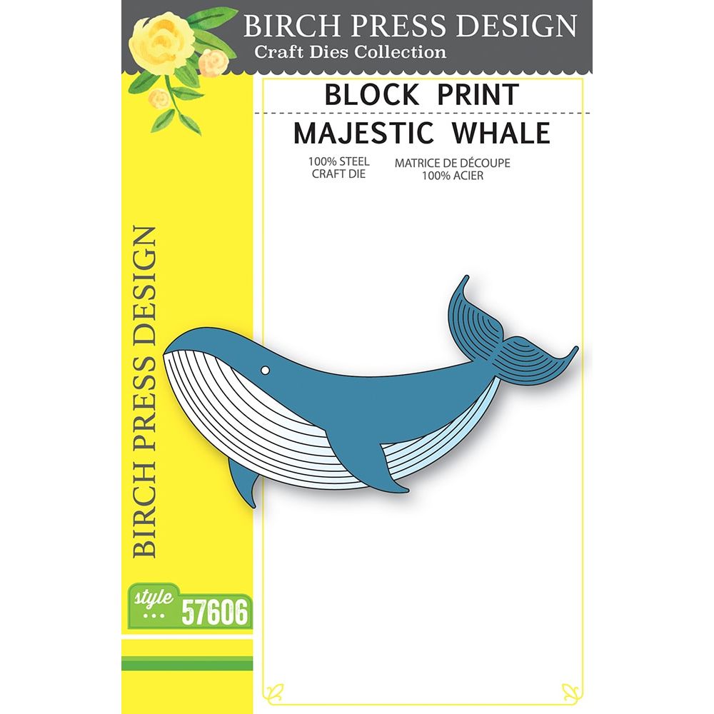 Birch Press Design Block Print Majestic Whale Dies, from the Tide Cool Collection, are crafted from durable steel and designed to work seamlessly with most die-cutting machines. These wafer-thin dies cut effortlessly through cardstock, felt, fabric, and shrink plastic, making them a great addition to your crafting supplies. This set includes 2 dies that cut out 3 designs, allowing you to create a beautifully detailed swimming whale with layered elements for added depth and visual interest. Assembled size is approximately 4.2 x 2.3 inches. Works well with Birch Press Design dies: Block Print Whale Duo (57630) and Corner Waves (57607). Ideal for nautical cards, summer projects, and nature-inspired paper crafts.