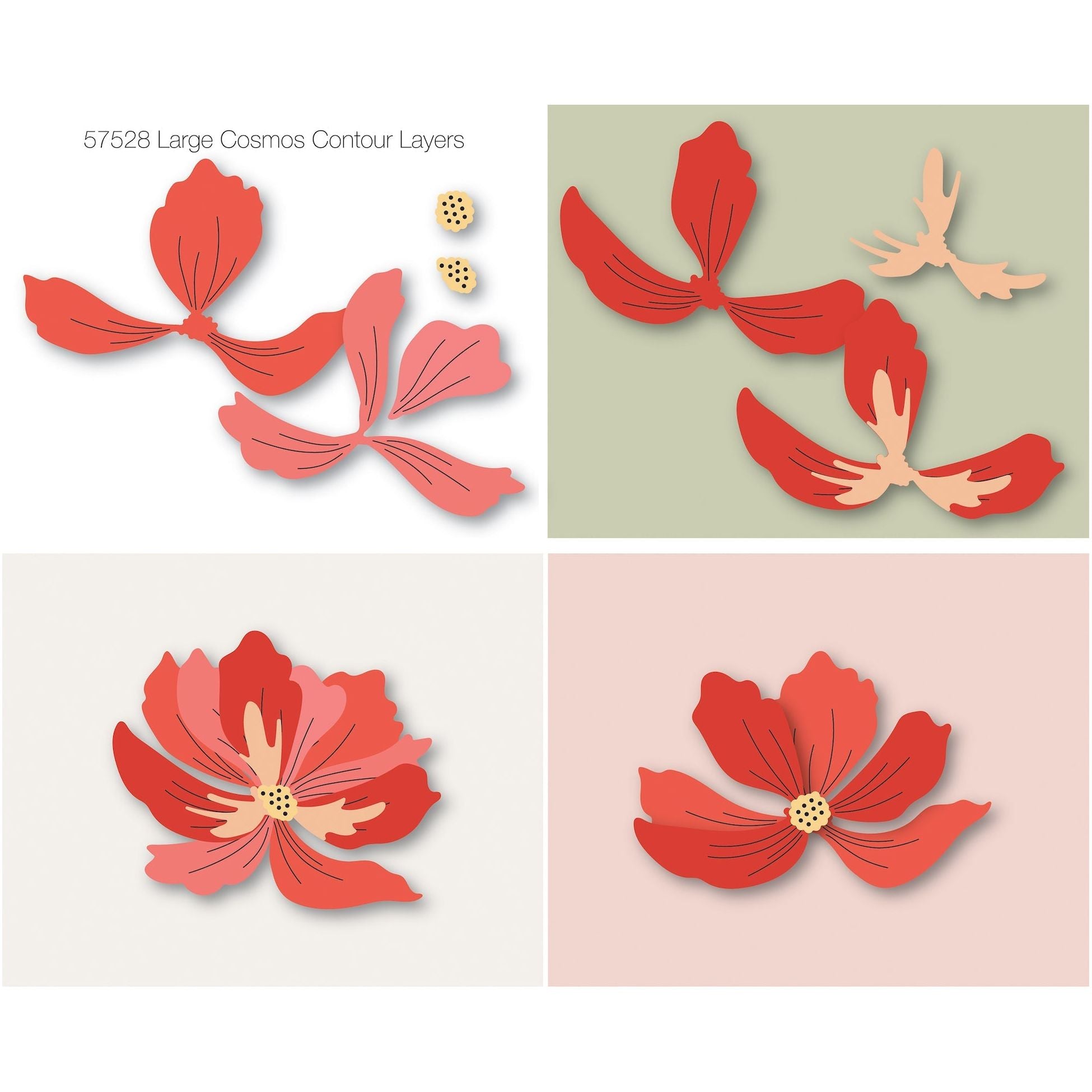 The Birch Press Design Large Cosmos Contour Layers Dies are a set of versatile dies for your crafting needs. This set includes three dies that can cut out seven different designs. The assembled size of the cut-out design is approximately 3.4 x 2.9 inches. These dies are made of durable steel and are compatible with nearly all die-cutting machines available on the market. You can use them on various materials including cardstock, felt, fabric, or shrink plastic. With these dies, you can cut, stencil, emboss, and create a variety of projects. The Large Cosmos Contour Layers Dies feature a beautiful flower design with layering petals and stamen, which adds depth and dimension to your creations.