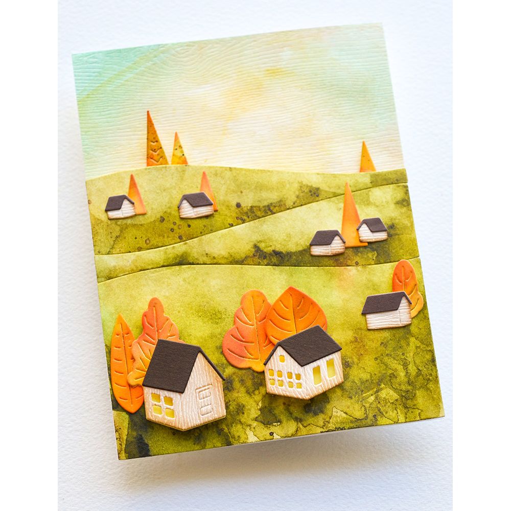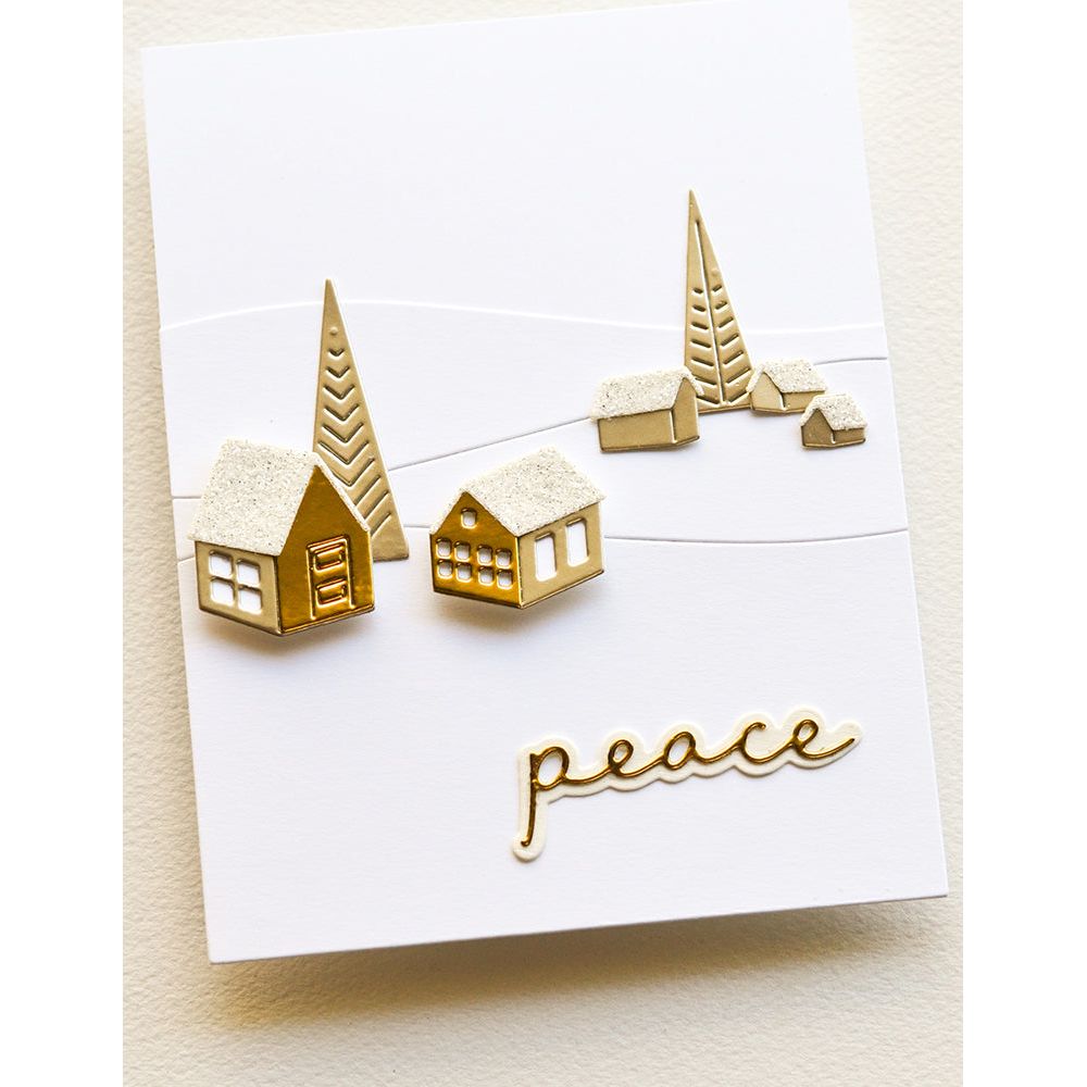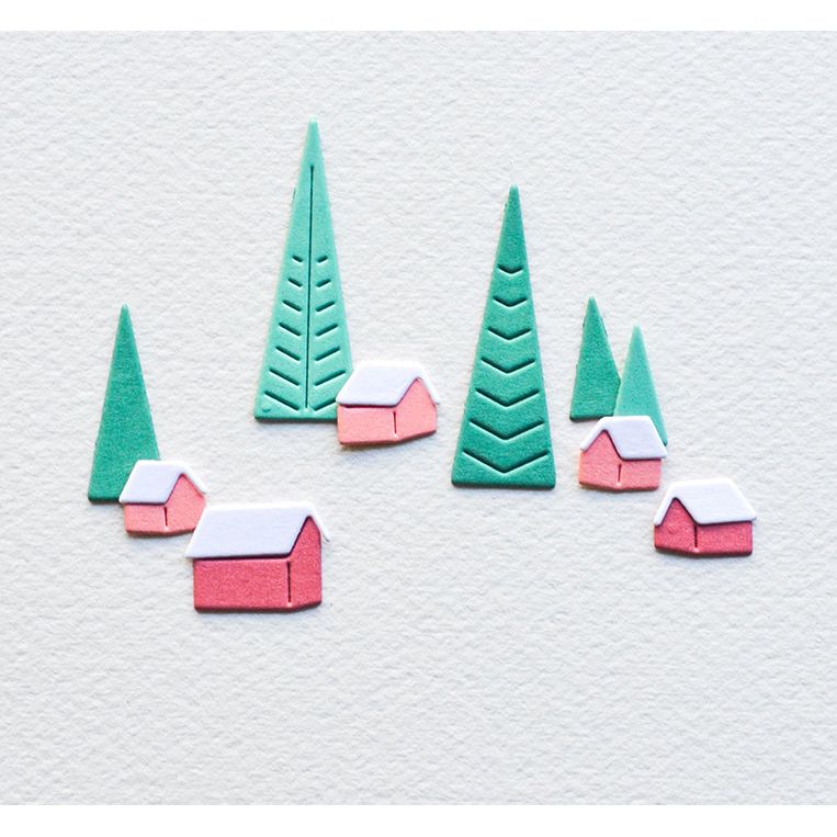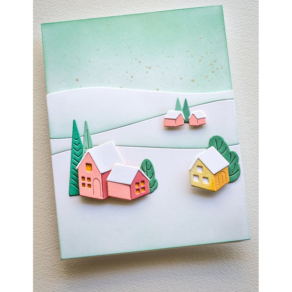 Birch Press Designs Littletown Village Dies, part of the Joyful Christmas Collection, are crafted from durable steel and are compatible with nearly every machine available on the market. These versatile dies can be used on various materials, including cardstock, felt, fabric, or shrink plastic, offering you the flexibility to cut, stencil, emboss, and bring your creative ideas to life. The set includes 2 wafer-thin dies that cut out 15 designs. Dimensions vary, with trees ranging from approximately 0.4 x 0.9 inches to 0.5 x 1.4 inches, smaller trees at 0.3 x 0.6 inches, elements at 0.4 x 0.3 inches, houses at 0.5 x 0.4 inches, and assembled houses at 0.7 x 0.5 inches. Create a charming village scene complete with houses and trees. These dies are designed to complement other Littletown Village dies, such as Wavy Hillside Dies 57563, Littletown Church Dies 57565, Littletown Cabins Dies 57566, and Littletown Home Dies 57567, allowing you to expand your festive scenes.