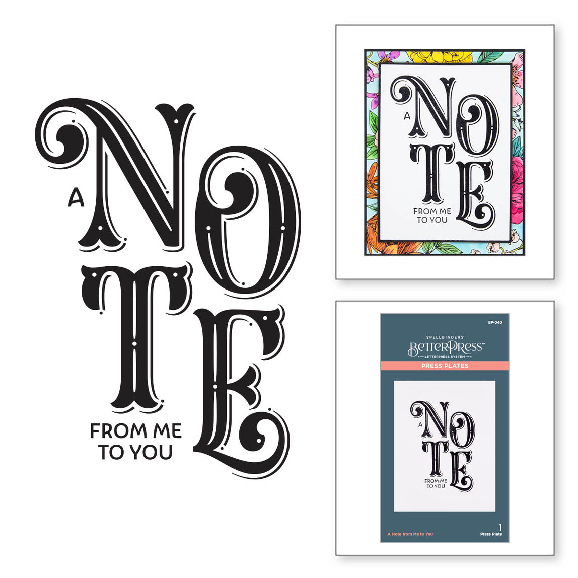 The A Note from Me to You Press Plate is part of the BetterPress Collection by Spellbinders and features a playful sentiment that's perfect to send to a friend. Imagine their delight upon receiving a card with this design! Use the BetterPress Ink to ink the plate and create a crisp letterpress design on the BetterPress Cotton Card Panel and Sheets.