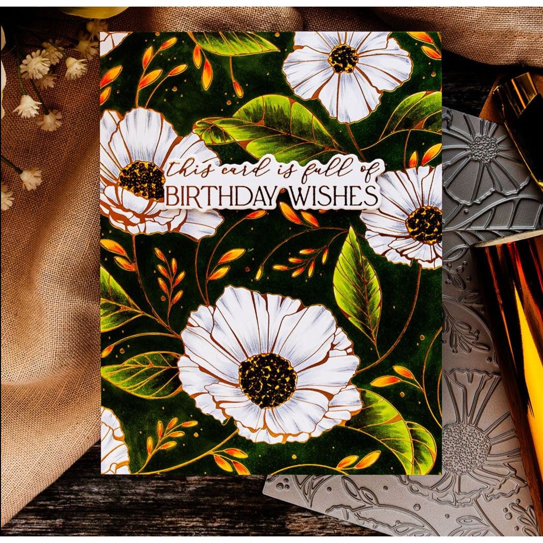 The Spellbinders Cosmos Backdrop Press Plate is a must-have for cosmos flower enthusiasts! This press plate features delightful cosmos blooms that can create a charming backdrop for any card creation. To achieve a crisp and detailed letterpress design, you can ink the plate with BetterPress Ink and then press it against BetterPress Cotton Card Panels and Sheets.
