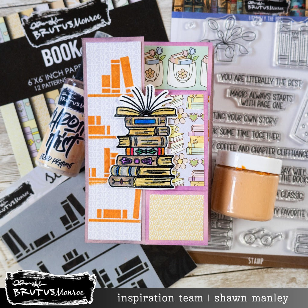Brutus Monroe Book Club Paper Pad is part of the Page Turner Collection. This playful 6 x 6-inch paper pad includes 24 sheets featuring 12 unique book-themed patterns, with four sheets of each design. The collection showcases rows and stacks of books, hearts, floral accents, chevron, textures, bags, and more—all in a soft, inviting color palette. Perfect for cardmaking, journaling, or documenting your favorite reads.