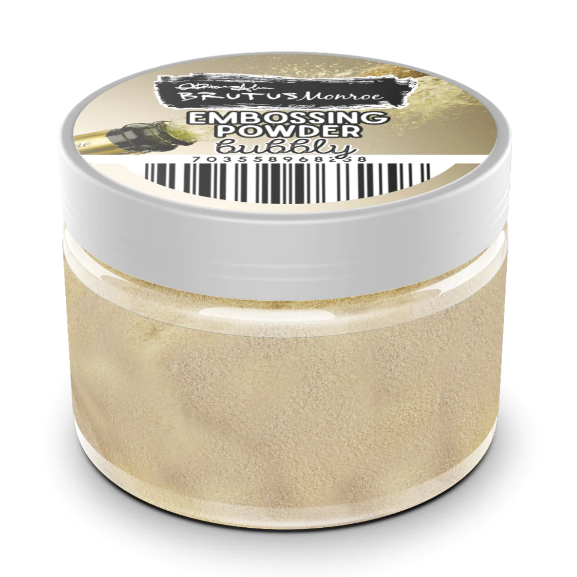 Get lost in the golden splendor of Brutus Monroe's Bubbly Embossing Powder. Surrender to the golden effervescence of this exquisite champagne-hued embossing powder. It's the ultimate fusion of elegance and sparkle, destined to breathe life into your creative endeavor. Every jar holds approximately 2 ounces of this enchanting powder.