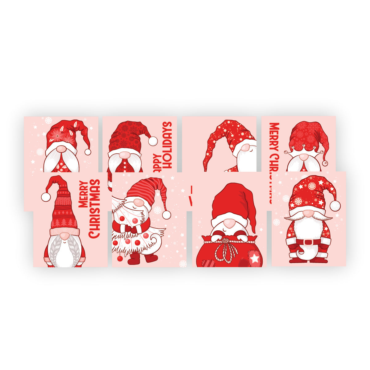 Brutus Monroe Festive Gnomes Card Panels, part of the I’ll Be Gnome Collection, include 8 pre-printed A2 panels featuring cheerful gnomes in playful poses wearing Santa hats, holding trees or gift sacks, with sentiments that read "Happy Holidays" and "Merry Christmas." Each colorful design is ready for your creative touch—foil them, color them, or combine both techniques—to add festive charm and personality to your handmade cards and holiday storytelling projects.