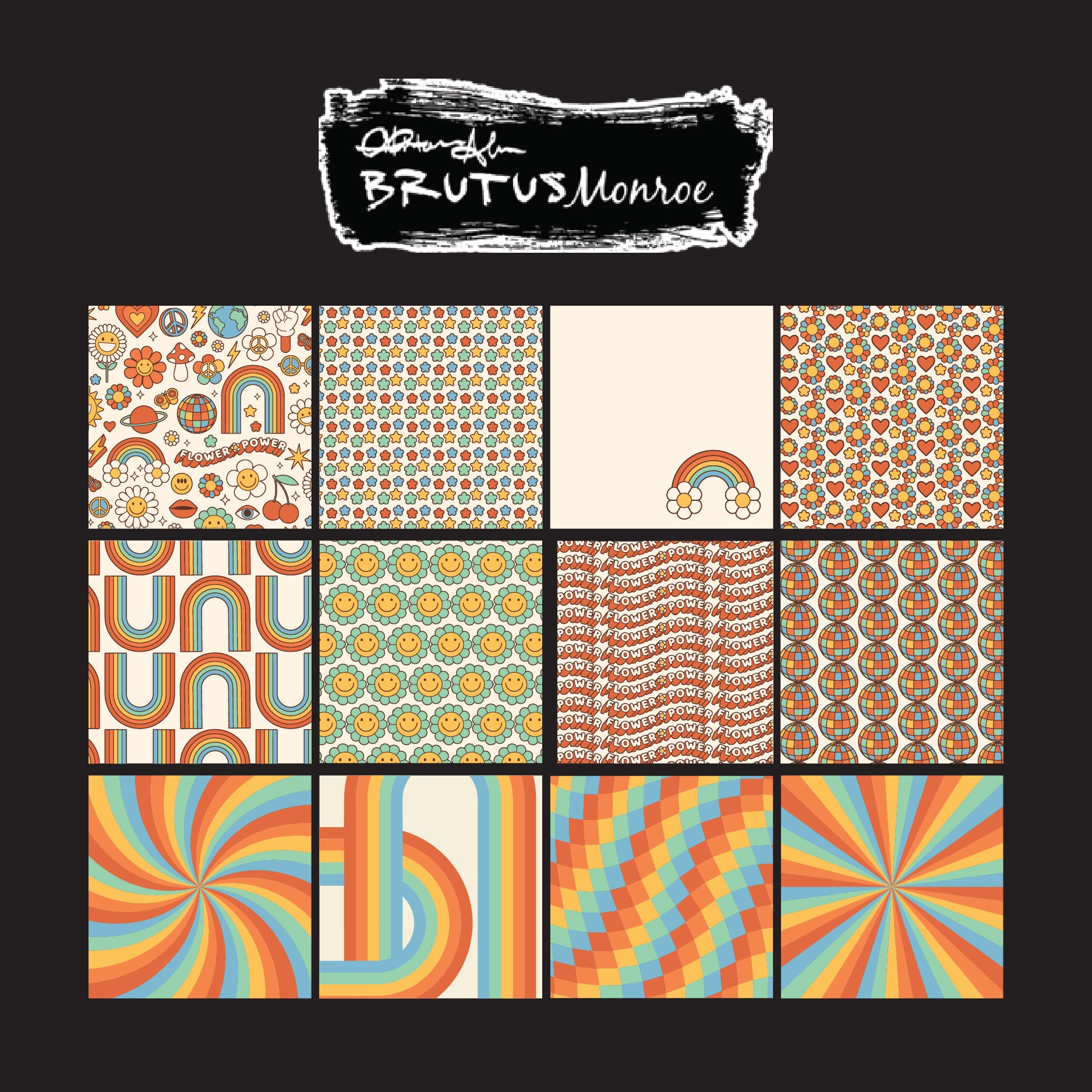 The Brutus Monroe Flower Power Paper Pad is a standout piece in the Groovy Darling Collection, designed to bring a nostalgic vibe to your crafting projects. This 6 x 6-inch pad comprises 24 sheets, with four copies of each of the 12 unique, retro-inspired patterns. This vibrant paper pad is adorned with a range of classic seventies motifs, including rainbows, the phrase "flower power" in retro fonts, smiling daisies, and disco balls. It also features iconic seventies symbols such as peace signs, lips, butterflies, and suns, all designed to evoke the free-spirited energy of the era. Whether you're crafting scrapbook entries, custom cards, or decorative items, the Flower Power Paper Pad offers a fun and colorful way to add a touch of vintage flair to any project.