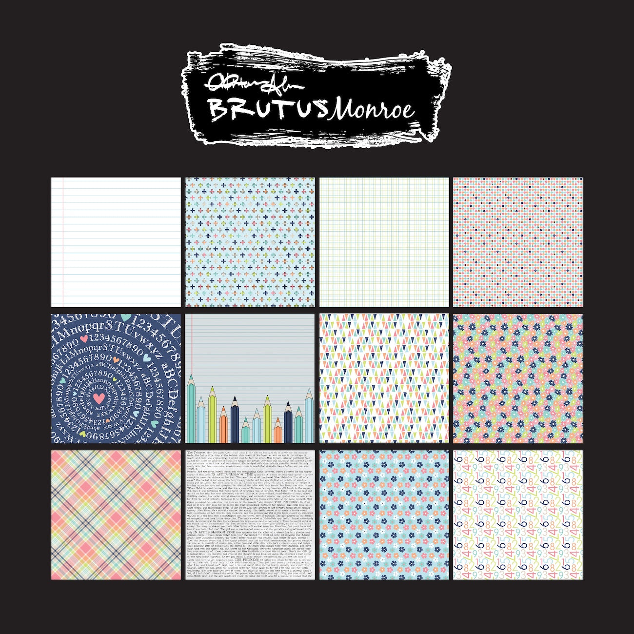 Brutus Monroe Hall Pass 6x6 Paper Pad is part of the Page Turner Collection. This playful 6 x 6-inch pad includes 24 colorful sheets featuring 12 school-inspired patterns, with four sheets of each. Designs include ruled paper, graphs, numbers, dots, triangles, flowers, pencils, alphabet, plaid, plus symbols, and playful classroom-themed text. Perfect for back-to-school projects, teacher gifts, or documenting academic milestones.